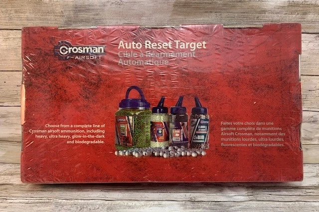 Crossman Airsoft Auto Reset Target, New In Sealed Box. 3 different sized targets, No batteries required. Can be used indoors or outdoors. Target ONLY, NO airsoft ammunition included. Mearuments 15.5" x 9" x 6". New in sealed boxed, in great condition ( see pictures for more condition details).