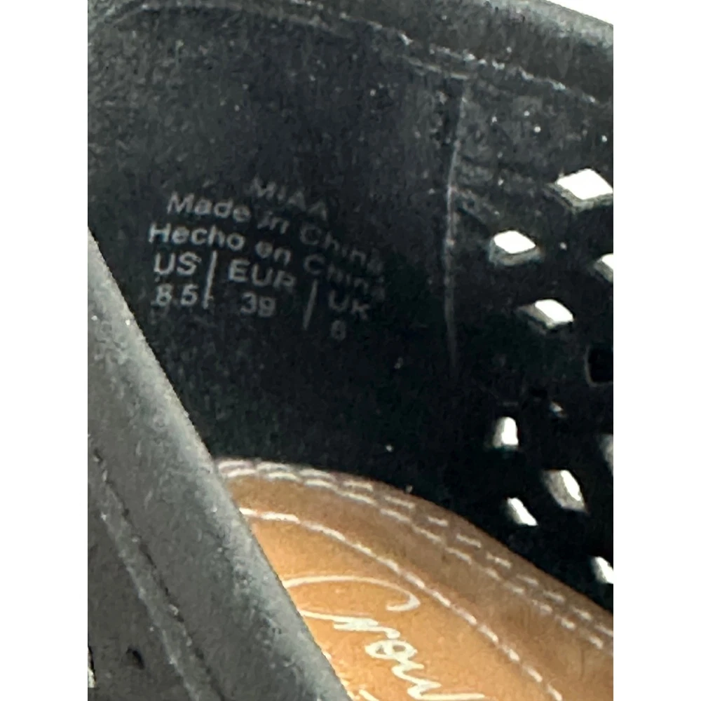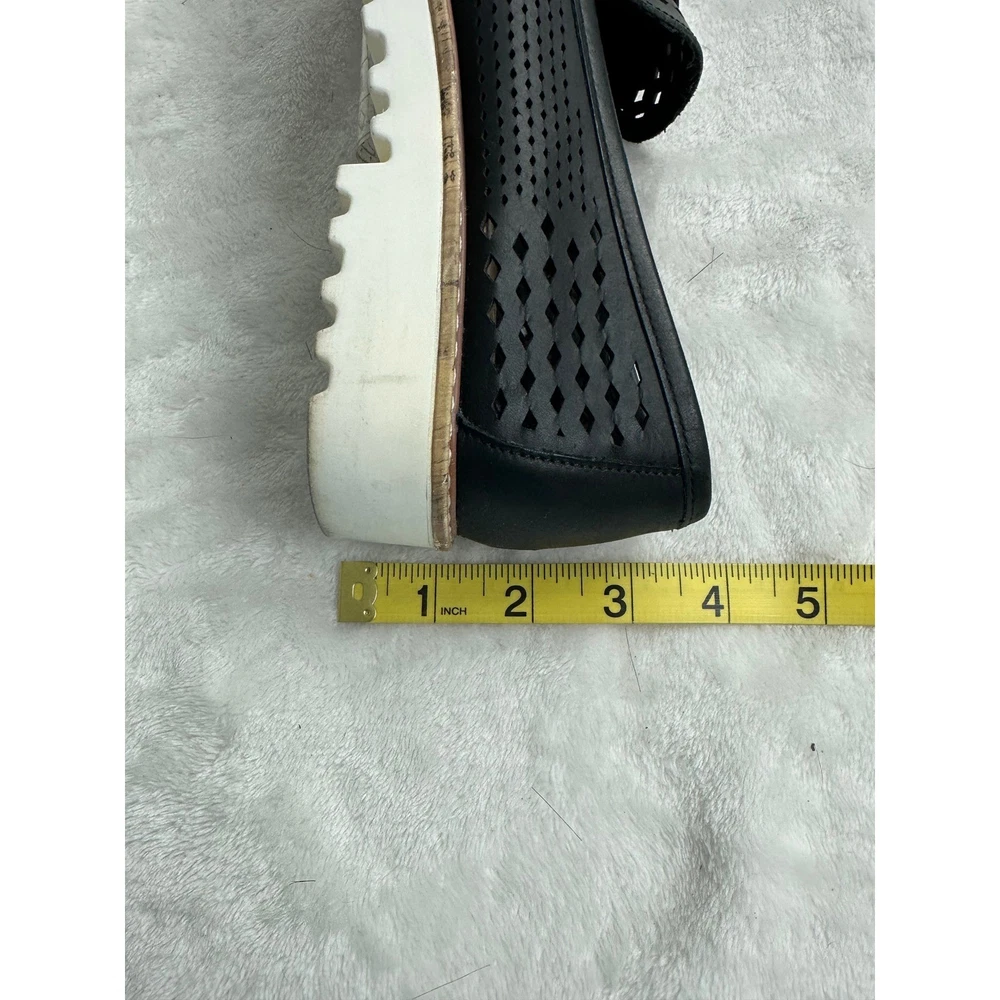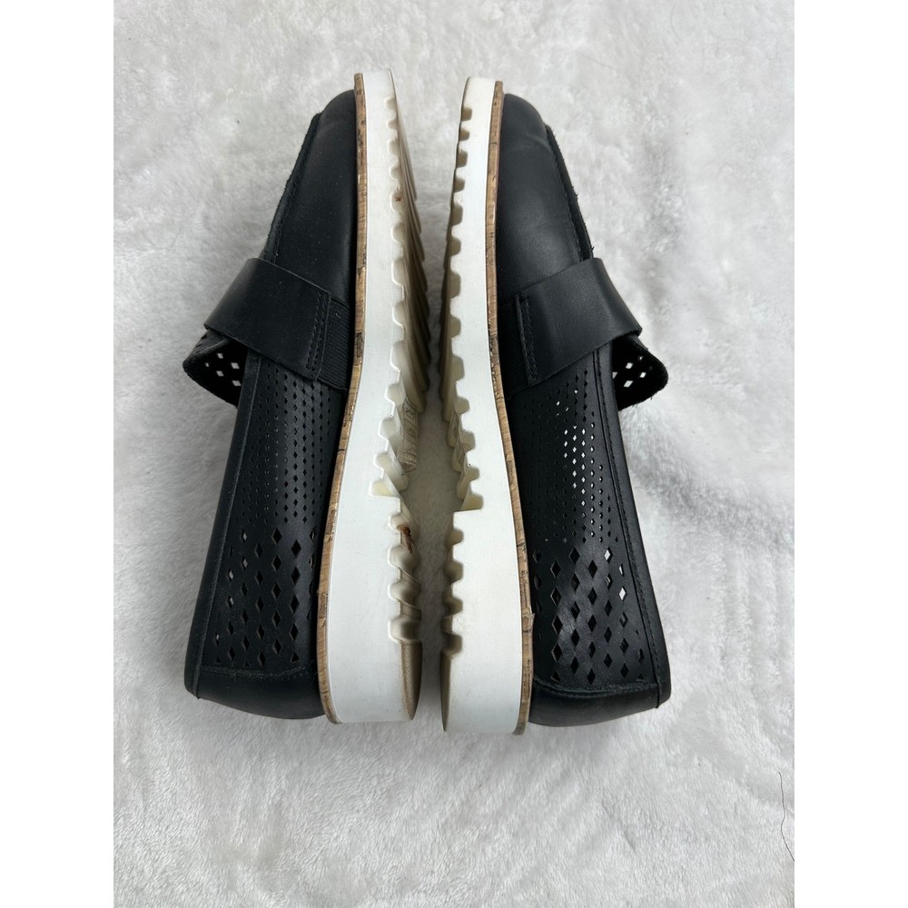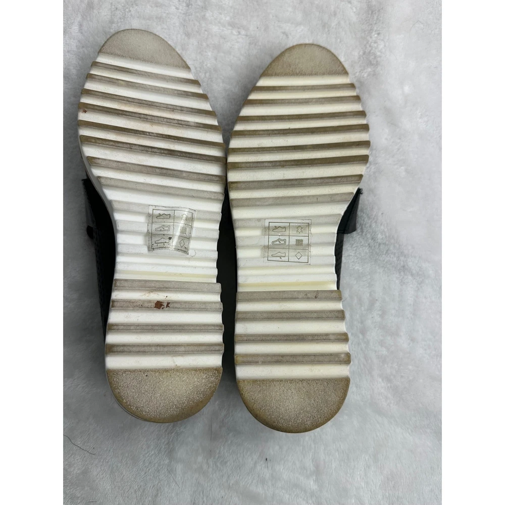 Crown Vintage Miaa loafers offer a modern twist on a classic silhouette with their intricate laser-cut perforated uppers and chunky platform lug soles. These slip-on shoes feature a smooth leather-like strap across the vamp and a pointed toe for a refined look, balanced by the sporty white serrated outsoles that provide both height and traction. The breathable design makes them an ideal choice for transitioning through seasons while maintaining a polished aesthetic. Brand: Crown Vintage Model: Miaa Style: Loafer / Platform Color: Black / White Material: Synthetic Upper Toe Shape: Pointed Closure: Slip-on Sole: Lug Platform Detail: Perforated / Laser-cut Heel Height: Approx 1.5" Platform Height: Approx 1" Keywords: Dark Academia, Preppy, Coastal Grandma, Minimalist, Summer Goth, Workwear, Business Casual, Breathable, Lightweight, Lug Sole, Chunky, Edgy, Transitional See photos for measurements. Ships from a pet friendly, smoke-free home. Contact me with any questions.