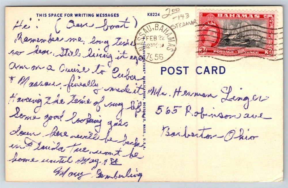 Cruise Ship Steamer SS Evangeline Nassau Bahamas Int'l Linen Postcard L7 Thank you for visiting! This is a standard size postcard, 3.5" X 5.5". In stock, usually ships within 24 hours of your purchase. Please ask questions if you are unsure about anything. Our goal is for your complete satisfaction with the postcard and your experience. Check all my other listings in my store. RETIREDWITHBOOKS Powered by SixBit's eCommerce Solution