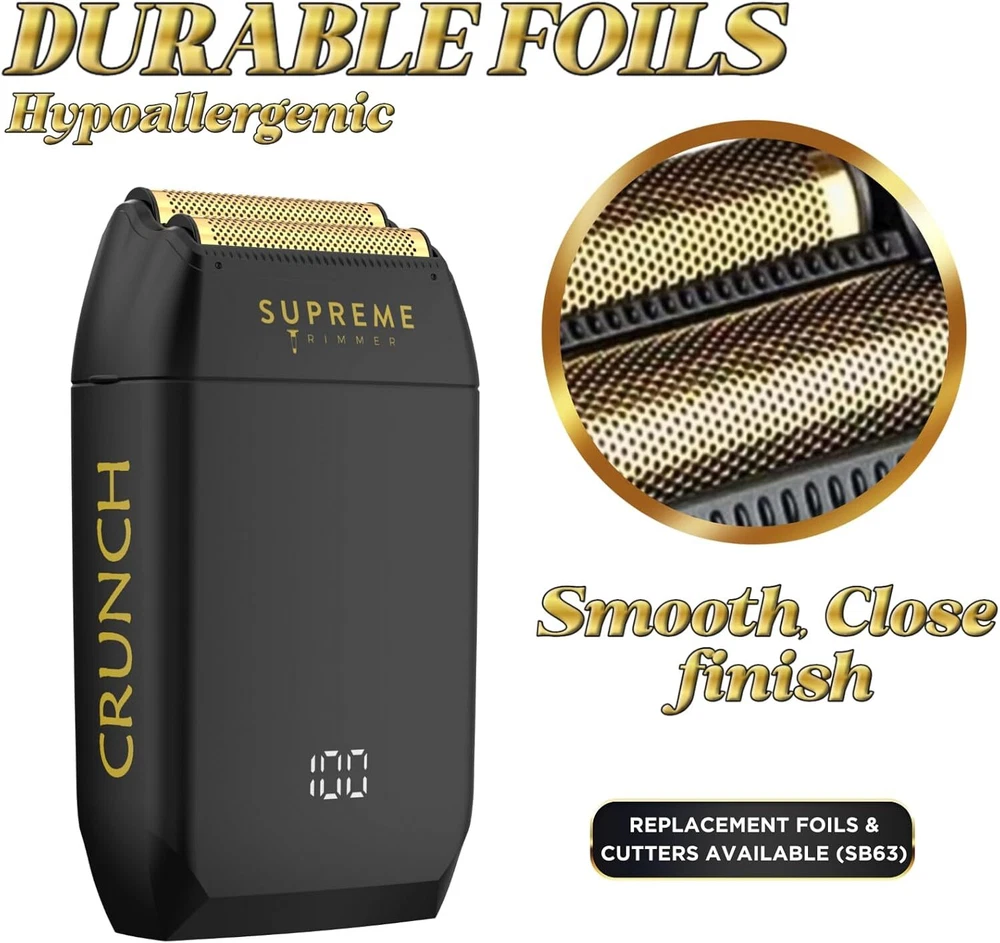 Product Description Crunch Mens Foil Shaver STF602 | 150 Minute Run Time Men's Electric Razor | Waterproof Shaver for Short hair or Stubble, Barber Use | Black Barber Foil Shaver: Ideal for home use and creating impressive fades, this foil shaver excels with short stubble. For optimal results, trim hair to the desired length before shaving. It offers a super-close shave, user-friendly design, and affordability, providing a barber-quality experience. Waterproof IPX6 Foil Shaver: This shaver can be used on wet or dry surfaces without risk of water damage. It's easy to clean, maintaining optimal efficiency by regularly cleaning the foil and cutters. Designed for barbers, it's suitable for use on the head. Cordless or Corded Use - 2.5 Hours of Use + Display: Experience up to 150 minutes of cordless use on a single charge with a long-lasting Li-ion battery, three times longer than competitors. A hidden battery display shows the remaining battery percentage. Use the shaver corded if needed. Ideal for travelers, it supports worldwide voltage. Hypoallergenic Foils for Bump-Free Shaving: Achieve a precise, extra-close shave on the face, head, and hairline with our electric shaver. Equipped with high-quality, replaceable cutters (#SB63), it offers maximum performance. Hypoallergenic foils ensure a bump-free shaving experience, enhancing your routine with superior cutting technology. What's Included: Elevate your grooming with our 9-piece set featuring a powerful electric razor with an LCD screen. The set includes 3 cleaning brushes, a USB cable, a charger stand, a foil guard, and a hard shell travel case for convenience on the go. About Us We are a reputable seller with many years of experience selling on eBay. Our goal is to provide high-quality products and excellent customer service. Shipping Items will be shipped within 1-3 business days when we received payment. (Orders are not processed on weekends & holidays) Tracking information will be sent once item is shipped. Delivery time depends on destination and other factors Item is shipped to ebay address. Leaving correct address can minimize delay. For international shipping and shipping to Guam, Hawaii and Alaska, Please contact us before placing the order. International buyers please note: Import duties, taxes and charges are not included in the item price or shipping charges. These charges are buyer’s responsibility. We will try our best to reduce the risk of the custom duties. Local pick-up is unavailable at the moment. Contact Us We reply any email messages within 1 business / working days(off-duty at weekend). If you do not get a response from us, then please check your junk or spam mailbox. Our Business hours: Mon-Fri 9:00-18:00, UTC/GMT +8 hours. Please contact us either by clicking "contact seller" in the "purchase history" section or simply click "ask a question" at the bottom of this page. If you are unsatisfied with our item or service, please contact us before leaving any feedback. We are committed to resolve all issues in a friendly and satisfactory manner.