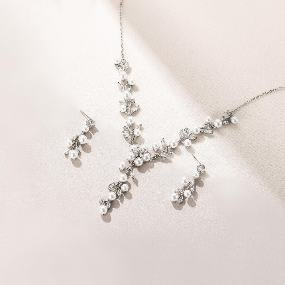 Crysdue Floral Bridal Jewelry for Wedding, Cubic Zirconia Wedding Jewelry Set for Bride Bridesmaid, Elegant Simulated Pearl Cluster Necklace Earrings Set for Wedding Prom Party Product Details Style: 13- silver Brand: Crysdue MPN: Does not apply UPC: Does not apply EAN: Does not apply Department : womens Date First Available : April 26, 2024 Brand, Seller, or Collection Name: Crysdue Metal: Brass Material: Brass Gem Type: Cubic Zirconia, Pearl Setting: Prong Setting Model number: 21000635-1 Crysdue ❤Inspiration Crysdue devoted to design and produce the most suitable jewelry for you; we select the quality of raw materials, create fashionable accessories. We will pay more attention to the comfort and safety of wearing the product, while pursue innovation. We have always insisted on choosing materials that are harmless to the human body. Give you a comfortable wearing experience.Our Women Jewelry Set was made of High Quality Cubic Zirconia, silver and gold plated, which ensures the polished surface is high sparkle and shine. Also Cubic Zirconia is well known as a substitute for diamond, due to its high hardness and great fire.