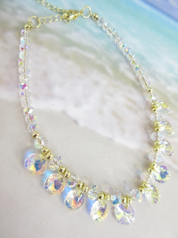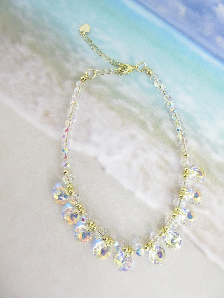 OUR TOP SELLER! YOU MUST MUST MUST SEE THIS UP CLOSE TO APPRECIATE! Brand new and sent to you in a pretty little satin gift pouch Fashion jewelry at its most beautiful Stunning Crystal Prims Ankle Bracelet Anklet Think Beach Vacation! Think Cruise MEASURES 10in long from end to end INCLUDING EXTENSION CHAIN! These are glass beads/charms and are NOT plastic BE SURE TO first MEASURE YOUR ANKLE AND ALLOW FOR SLACK/MOVEMENT Lobster claw clasp THE SPARKLE IS REAL! PLEASE REMEMBER, ALL JEWELRY EVERYDAY IS BUY 2 GET 1 FREE PLUS FAST & FREE USA SHIPPING, MUST PLACE SELECTIONS INTO THE EBAY SHOPPING CART FOR DISCOUNT TO BE APPLIED AT CHECKOUT