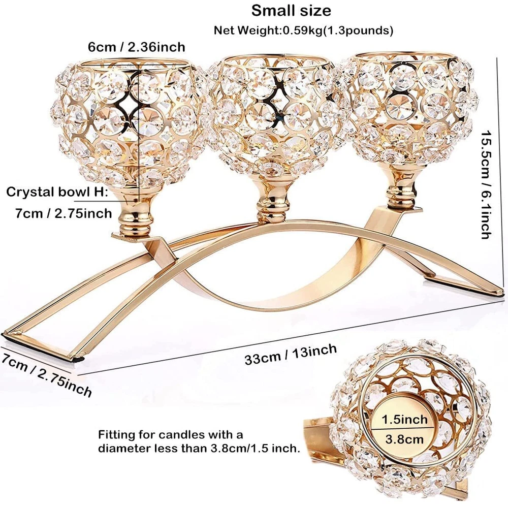 Crystal Candle Holders 3 Wick Gold Centerpiece Table Decorations for Dining Room Living Room Bling Votive Tealight Candle Holder Coffee Dining Table Centerpiece Decor Christmas Decorations Candle Holders for Table Centerpiece:Elegant and Exquisite. Only fitting for candles (tea light candle, led candles,votive candle, etc) with a diameter less than 3.8cm/1.5”.Looks very high-end sitting on table.Glittering crystal bowl creates a romantic Ambience.Crossover arch shape can ensure the holder solid and stable.Candle holder is very sturdy,well-made,shiny and elegant.Pretty addition to any area of home.Perfect choice for your home decor.Great for any season. High Quality:The crystals are nice high quality ones with lots of sparkle.Very beautifully constructed and when candles are lit up in it the light show is great when you have the lights off. Crystal candle holder have superb clarity.Good light transmission.Glistens even without light shining on it.Tea light candle holder with great ornamental and practicality is an indispensable item in life. Exquisite Craft:Crystal beads candle holder.Well made and sturdy.Candle holder's crystals are welded to the overall structure to make the octagonal crystals more neat and stable.More gorgeous, steadier and sturdier than normal 3 arm candle holders. And, there are also black flannel anti-skid floor mats on the bottom of it so it sits gently on a table without worrying about marrying your furniture. Beautiful centerpiece for any table. Wide Application:Fits best on flameless electronic candle or tea light candle.Also can be matched with flowers for tabletop decor accessories.Perfect for for weddings, birthday,housewarming party,fireplace ect.centerpiece table decorations.Also great as gifts for Mothers Day Valentines Day House warming party Wedding Birthdays Christmas and Thanksgiving festive atmosphere decorations. Beautiful for in-house decor or for gifting purpose too. Gifts for Women,gifts for mom,gifts for wife,Housewarming Gift Tips:This candle Holder can be disassembled. If you find the holders are not in line with one another.Please dismount the crystal bowl,put it together again. Thread design that could easily be installed and disassembled.....Crystal beaded candle holder,centerpiece table decorations for living room dining room coffee table decoration,candle stick gold 3 wick candle holder candlestick holders candelabra,gold centerpieces for table,christmas centerpieces for tables,dinner table centerpiece decor gift ideas Housewarming gifts new house new home Shipping We offer FREE shipping on all orders! We ship within Three business days of payment, usually sooner. We use a selection of shipping services such as UPS, FedEx, USPS etc. We only ship to the lower 48 states, no APO/FPO addresses or PO Boxes allowed. Local pickups and combined shipping options are not provided at this time. International buyers – please note: Import duties, taxes, and charges aren't included in the item price or postage cost. These charges are the buyer's responsibility. Please check with your country's customs office to determine what these additional costs will be prior to bidding or buying. Order Cancellation Policy * Order Cancellation Policy ** You can return a product for up to 30 days from the date you purchased it. 1. The seller reserves the right to cancel the special case only due to eBay cancellation fee. 2. The decision of seller is the final. 3. The seller will respond to the cancellation request within 2 business days. Please wait for the result of cancellation. 4. In case the cancellation is not completed by some reasons, the buyer can follow the options below to get the refund. 4.1 The buyer can reject the item when it arrives. 4.2 The buyer can send the item back to the seller within 30 days If the buyer receives item (USA Shipment ONLY). The seller will provide the FREE return label to the buyer when the buyer opens " Return Item" case on eBay by using the reason as "Change my mind" ONLY. 5. When buyer has placed the order. The order will be processed and completed by automatic warehouse system within 5 minutes. In case that buyer sends the cancellation request after 5 minutes of placing the order, the request will be rejected. **Sending direct message to cancel the order is not allowed for every case.* Return Policy - If buyer would like to return the items for refund or replacement, please CONTACT SELLER to receive the free return label from seller. The refund or replacement will be processed with the tracking number of return label which is provided by seller only. The other ways of return which are not approved by seller will not be processed for the refund or replacement. Return You can return a product for up to 30 days from the date you purchased it. Any product you return must be in the same condition you received it and in the original packaging. Please keep the receipt. Payment We accept payment by any of the following methods: eBay Payments Please pay as soon as possible after winning an auction, as that will allow us to post your item to you sooner! Feedback Customer satisfaction is very important to us. If you have any problem with your order, please contact us and we will do our best to make you satisfied. Contact Us If you have any queries, please contact us via ebay. We usually respond within 24 hours on weekdays. Please visit our eBay store to check out other items for sale! Thank you for shopping at our store.