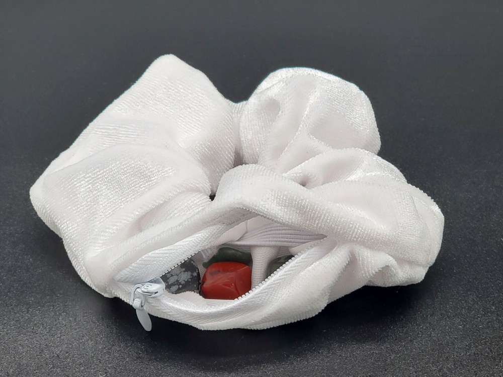 Crystal Chakra Scrunchie Hair White Velour Zipper Pocket with 7 Chakra Stones. 3-4 grams of each Chakra Stones. Crown Chakra - Clear Quartz - Healing 3rd Eye Chakra - Iolite - Meditation Throat Chakra - Blue Tiger Eye - Inner Strength Heart Chakra - Aventurine - Optimism, luck Solar Plexus Chakra - Tiger Eye - Wisdom, Protection, Prosperity Sacral Chakra - Red Jasper - Clears Negative Energy Root Chakra - Snowflake Obsidian - Promotes Self-esteem and Willpower I will intuitively choose one or two of each of the stones pictured . Please reach out to me with any questions, or if you would like more pictures. We feel our crystals & mineral specimens are the best available, and we go that extra mile to personally select each and every one of our crystals for their Premium quality, great energy, ultimate color variations & much more. All of our crystals & stones are natural unless otherwise noted. The ones that are natural, may have inclusions, natural lines, colors or indentations. This is a normal and part of the natural material. **Please understand the above description is not a promise to cure ailments. Points of the description have been taken from my favorite crystal books and online resources.**