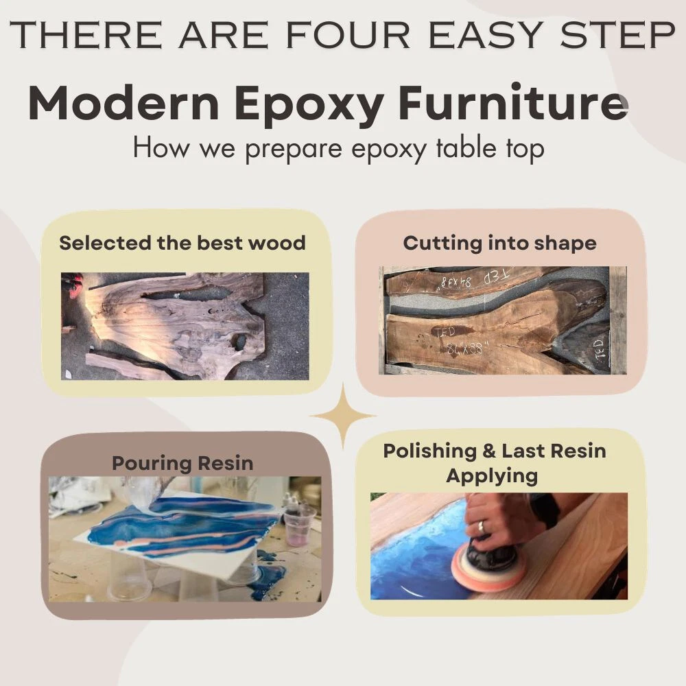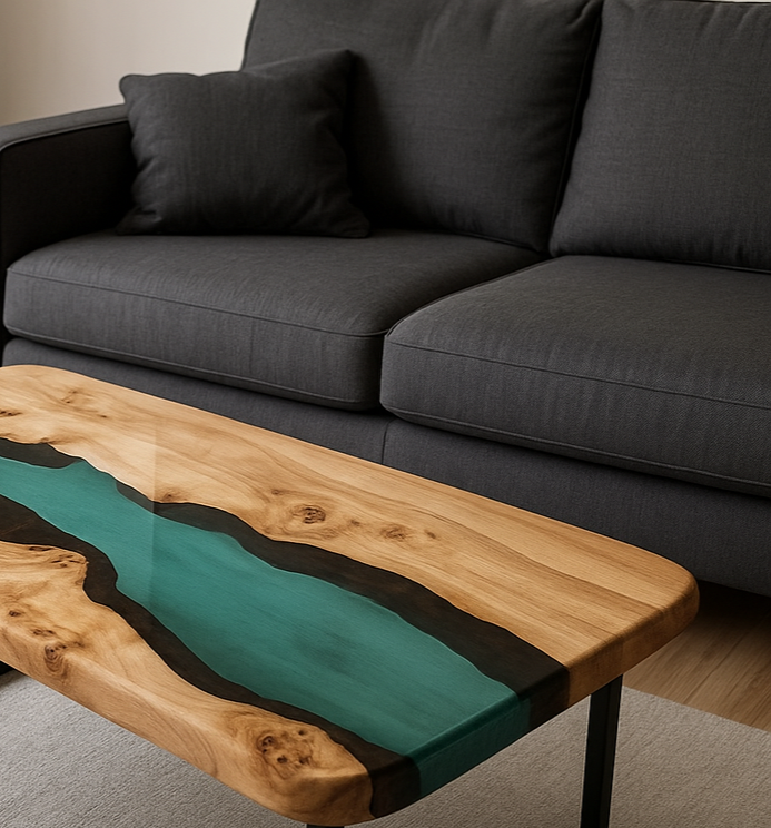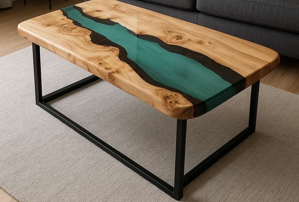love the table, a true work of art. Price to quality relationship very high. There are a lot of wanna bes out there, but few true craftsmen in this space, and they are craftsmen. Lots of back and forth to get what we desired.. nonlinear edges, curvy river, branch circles within wood, blue resin covering only 20% of table overall, specific length and width, leg style. Shipped via air very quickly too. Two thumbs up!