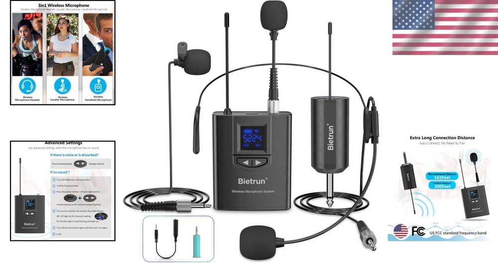 Crystal Clear UHF Wireless Lavalier Microphone - Long Range, Multi-Compatible ‹ › ‹ › ‹ › ‹ › ‹ › ‹ › ‹ › ‹ › ‹ › ‹ › Crystal Clear UHF Wireless Lavalier Microphone -Long Range, Multi-Compatible Features: Wide compatibility with 1/4" plug for use with Mixer, PA systems, desktops, and amplifiers. Includes built-in TRS and TRRS adapters for DSLR cameras, digital cameras, laptops, iPads, and smartphones (genuine USB-C to lightning cables required, not included). 165FT cover range with high sensitivity condenser microphone for clear sound transmission. Stable signal, no delay, radiation, or interference, equipped with 25 adjustable UHF channels. Three microphones included: headset mic, handheld mic, and lavalier lapel mic. Built-in rechargeable lithium-ion batteries providing up to 6 hours of working time. Benefits: Effortless versatility with wide compatibility options catering to various devices. Exceptional long-range transmission for flexible movement during live performances. Enhanced battery life ensures you can focus on your presentation without interruption. Multiple microphone options allow for personalized use, eliminating the need to purchase additional gear. Perfect for a variety of events: weddings, teaching, public speeches, interviews, and video recordings. Why choose Crystal Clear UHF Wireless Lavalier Microphone? Do you demand the highest quality audio for your performances and recordings? The Crystal Clear UHF Wireless Lavalier Microphone delivers just that. With a remarkable transmission range of 165 feet, this versatile system allows you the freedom to move while ensuring a pristine audio experience. From weddings to public speeches and more, it caters to all your audio needs. With triple microphone options, effortless setup, and a high-performing wireless system, there’s no need to compromise on quality. Elevate your sound game—order the Crystal Clear UHF Wireless Lavalier Microphone today and embrace the freedom of wireless audio! Shipping Free & Fast Shipping - We offer free shipping to most of the USA with a normal delivery time of 3-10 businessdays. However, due to various situations, additional delivery time (up to 3 weeks) may be required for some items. Alternative Carriers - We may use alternative carriers (e.g. USPS, FedEx, UPS, etc.) to ensure your package arrives safely and on time. Due to the use of multiple carriers, we are unable to provide a tracking number automatically. Handling Time - Orders are processed and shipped within 1-5 business days of receiving cleared payment. Shipping Restrictions - Shipping to Alaska, Hawaii, Puerto Rico, Guam, and other US territories may incur shipping charges or delivery restrictions. Please contact us before ordering, or your order can be refunded/cancelled. State Restrictions - There may be restrictions based on your state of purchase. For example, certain items may not be shipped to California due to state regulations. Contact for Tracking Updates - If you require tracking updates or have any concerns about the delivery of your order, please feel free to contact us, and we will be happy to assist you. Return Please see our ebay return policy. We do not accept return on most products. This is to avoid customers mis-using ebay returns. All sales are final. Please be sure to check the return policy listed at the top of the listing. In rare cases, we may accept returns, if the buyer pays both ways shipping and 20% restocking fee. If you are un-sure of return policy of a particular item, please ask before buying. Payment We accept all major credit cards, PayPal, and Apple Pay for your convenience. Your payment information is secure and encrypted to ensure a safe and seamless transaction. Please complete your payment within 3 days of purchase to avoid any delays in shipping. Feedback Your feedback is extremely important to us. We strive to provide the best products and customer service possible. If you are satisfied with your purchase, please take a moment to leave us a positive review. If you have any concerns or issues with your order, please contact us before leaving negative feedback. We are committed to resolving any problems and ensuring your satisfaction. Contact Us If you have any questions or concerns, please feel free to reach out to our customer support team. You can contact us through the eBay messaging system. We are available Monday to Friday, 9:00 am to 5:00 pm EST, and we will do our best to respond to your inquiry within 24 hours. Buy it now and enjoy a pleasant shopping experience! UPC: Not Set Maximum SPL: 98 dB Unit Quantity: 1 Item Weight: 10.6 ounces Connectivity: Wireless,1/4" Output,3.5 mm jack,6.35 mm jack Features: Plug and Play,Wide Compatibility,165FT Cover Range,Meet Multiple Needs at Once,6 Hours Working Time,Rechargeable,Signal stability,Anti-howling,Anti-jamming,Built-in converters,No delay Compatible Brand: Not Set Compatible Model: DSLR Camera Brand: Unbranded Form Factor: Lavalier/Lapel Model: Not Set MPN: Not Set Diaphragm Size: Small Suitable For: Live Performance Transducer Type: Condenser Mount Type: Stand Manufacturer Warranty: Not Set Polar Pattern: Unidirectional Color: Headset