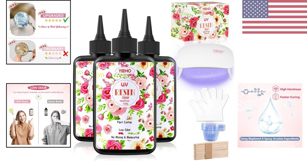 Crystal Clear UV Resin Starter Kit for Jewelry Making - Premium Supplies Set ‹ › ‹ › ‹ › ‹ › ‹ › ‹ › ‹ › ‹ › ‹ › Crystal Clear UV Resin Starter Kit for Jewelry Making -Premium Supplies Set Features: Includes 3 bottles of clear hard type epoxy resin, a UV lamp, 2 mixing rods, sticks, a color mixing cup, and a professional instruction manual. Premium UV epoxy resin with good transparency and hardness after curing. UV light with shorter curing time - only 1 minute for crystal clear results. Easy to use with detailed professional technical instruction manual. Perfect for creating jewelry such as necklaces, pendants, earrings, keychains, and accessories. Benefits: Complete starter kit for beginners in UV resin jewelry making. High-quality materials for beautiful and durable jewelry pieces. Quick curing time for fast and stunning results. Professional guidance for bubble-free and perfect curing effects. 12 months free return or exchange service for customer satisfaction. Why choose our UV Resin Starter Kit? Looking to create stunning jewelry pieces with ease and professional results? Our UV Resin Starter Kit has everything you need to get started, from premium materials to a UV lamp for quick curing. With detailed instructions and a focus on quality, you can create beautiful jewelry gifts for your loved ones in no time. Plus, with our excellent customer service, you can shop with confidence and peace of mind. Don't settle for subpar resin kits - choose our UV Resin Starter Kit for a truly premium jewelry making experience! Shipping Free & Fast Shipping - We offer free shipping to most of the USA with a normal delivery time of 3-7 days. However, due to the current situation, additional delivery time (up to 3 weeks) may be required for some items. Alternative Carriers - We may use alternative carriers (e.g. USPS, FedEx, UPS, etc.) to ensure your package arrives safely and on time. Due to the use of multiple carriers, we are unable to provide a tracking number automatically. Handling Time - Orders are processed and shipped within 1-2 business days of receiving cleared payment. Shipping Restrictions - Shipping to Alaska, Hawaii, Puerto Rico, Guam, and other US territories may incur shipping charges or delivery restrictions. Please contact us before ordering, or your order can be refunded/cancelled. State Restrictions - There may be restrictions based on your state of purchase. For example, certain items may not be shipped to California due to state regulations. Contact for Tracking Updates - If you require tracking updates or have any concerns about the delivery of your order, please feel free to contact us, and we will be happy to assist you. Return 30-Day Hassle-Free Returns - We want you to be completely satisfied with your purchase. If you are not, you can return the item within 30 days of receiving it for a full refund or exchange. Easy Return Process - To start a return, simply contact us and we will provide you with a prepaid return shipping label and detailed instructions. Restocking Fee - There are no restocking fees for returns. However, the buyer is responsible for return shipping costs if the return is not due to a seller's error. Refund Processing Time - Refunds will be processed within 5 business days of receiving the returned item in its original condition. Payment We accept all major credit cards, PayPal, and Apple Pay for your convenience. Your payment information is secure and encrypted to ensure a safe and seamless transaction. Please complete your payment within 3 days of purchase to avoid any delays in shipping. Feedback Your feedback is extremely important to us. We strive to provide the best products and customer service possible. If you are satisfied with your purchase, please take a moment to leave us a positive review. If you have any concerns or issues with your order, please contact us before leaving negative feedback. We are committed to resolving any problems and ensuring your satisfaction. Contact Us If you have any questions or concerns, please feel free to reach out to our customer support team. You can contact us through the eBay messaging system. We are available Monday to Friday, 9:00 am to 5:00 pm EST, and we will do our best to respond to your inquiry within 24 hours. Thank you for supporting our small family business!
