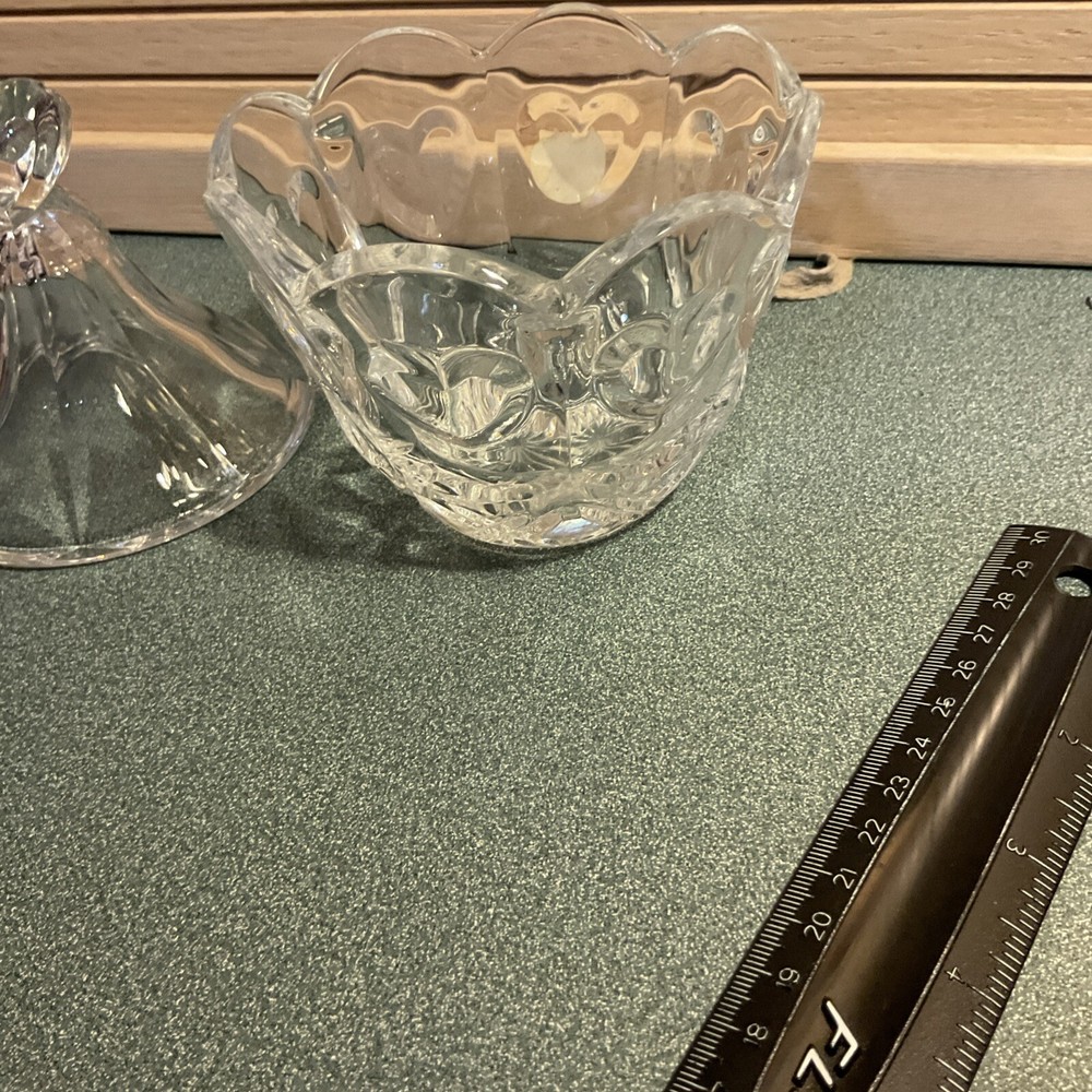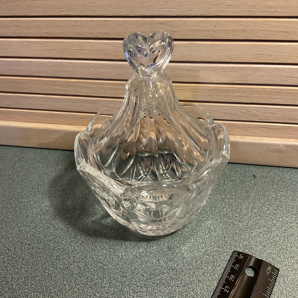 Pattern: Vintage Heart Vintage: Yes Country/Region of Manufacture: Unknown Shape: Heart Type: Candy Bowl Item Height: 6 In Item Width: 5 In Material: Crystal Color: Clear Set Includes: Bowl And Lid Care Instructions: Machine Washable up to 100°F Item Length: 5 In Brand: Unmarked Item Weight: 1 lb