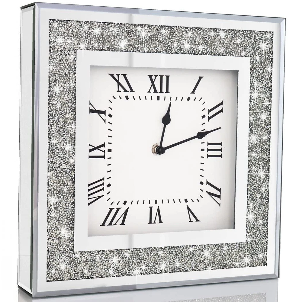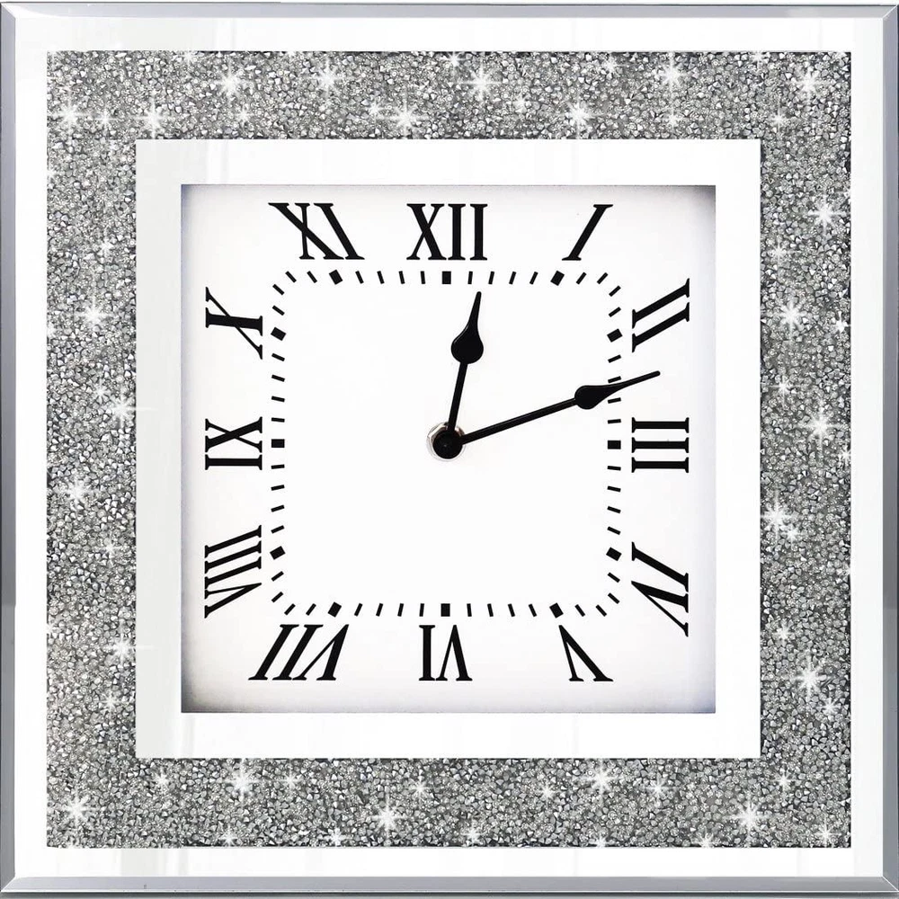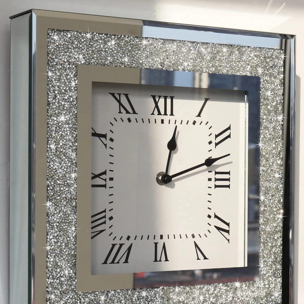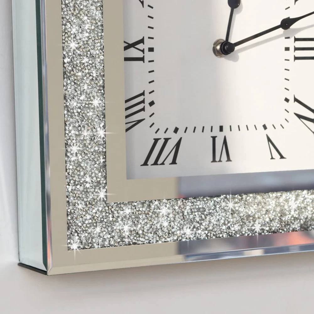 Crystal Crush Diamond Mirrored Square Wall Clock with Sparkle Twinkle Bling D...