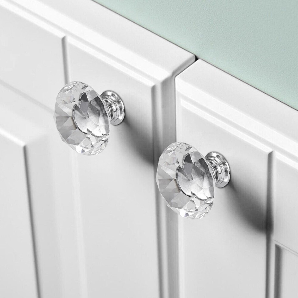 Crystal Glass Knobs Drawer Pulls Diamond Shape Kitchen Cabinet Dresser Pulls Lot