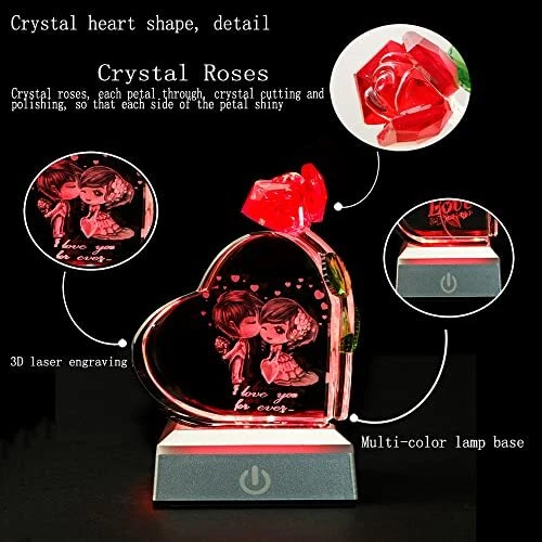 Return Policy Fast Delivery Trusted seller Crystal Heart Crystal Roses Valentine's Day Gift Home Decoration Gift for Wife,Lady,Mom,Birthday (Lovers) Product Description Size: 6.8x6.8x12cm Material: K9 crystal Crystal heart, crystal roses, each petal after, crystal cutting and polishing, so that each side of the petal shiny, so that the crystal more transparent and clear beautiful 3D crystal laser engraving technology, so that the figure more prominent three-dimensional sense, with a lamp holder, LED lights so that the figure shows different colors, so that the crystal beautiful and beautiful Crystal hearts, crystal roses, perfect for lovers, girlfriends, moms, dads, ladies, men, suitable for holidays, Valentine's Day, Christmas, Mother's Day, Thanksgiving, weddings, anniversaries, gift box packaging The lampholder LED light, which easily changes to multiple colors with the touch of a switch, is powered by 3 AAA batteries (not included) or a USB cable (included). It emits a warm, soothing light to create a safe and comfortable atmosp. Living room, office Home decoration, ornament Shipping Returns Payment Shipping Shipping is FREE to all addresses other than APO/PO boxes in the lower 48 states. All our stock ships from US-based warehouses. Shipped via USPS or UPS (depending on location and package weight) Unless stated otherwise, all orders will ship within 24-72 hours of your payment being processed. Check our feedback to see the great reviews of FAST shipping we offer. Returns Seller does not accept returns Payment We currently accept payment via eBay managed payments only. Once payment is cleared, we will dispatch your shipment within 1-3 business days. Please refer to the "Shipping" tab for more information regarding shipping speed to your destination.