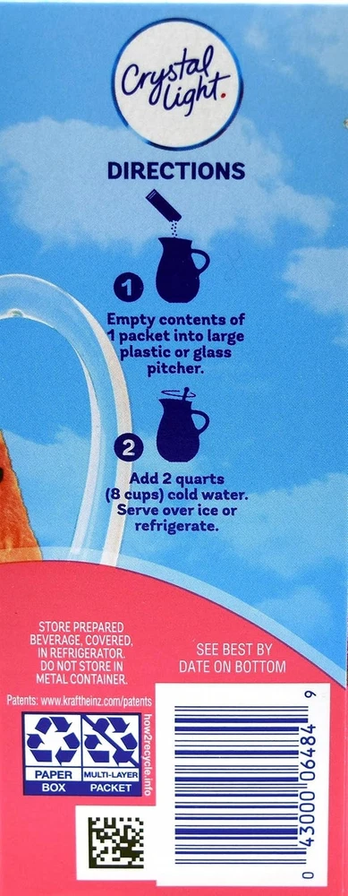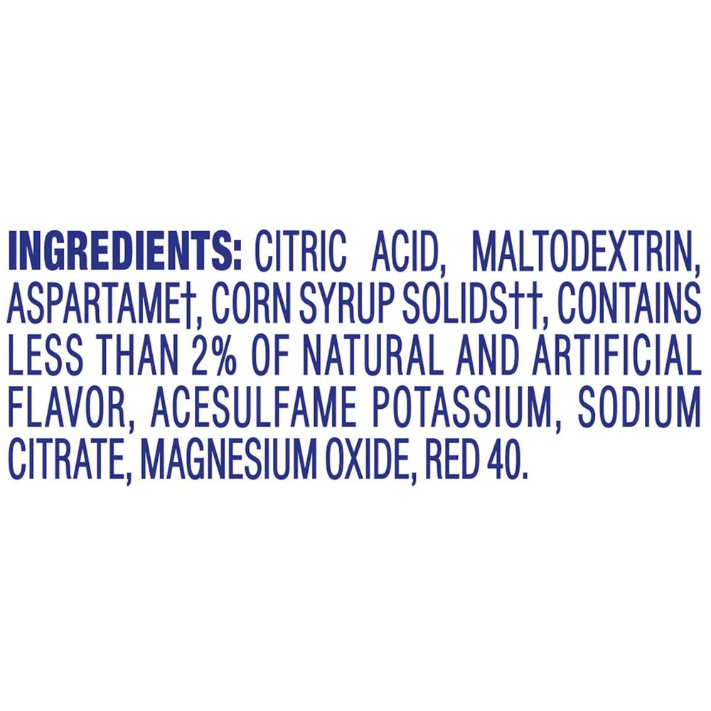 Crystal Light Strawberry Watermelon Drink Mix, (55.7 G) 12-Quart Canister 1.96 Ounce (Pack Of 6) Crystal Light Artificially Flavored Strawberry Watermelon Powdered Drink Mix is a deliciously fruity beverage you can enjoy at any time of day. With zero grams of sugar and only 5 calories per serving, Crystal Light drink mix is a sweet alternative to juice and soda and has 90 percent fewer calories than leading beverages, About this item 6 ct canister of Crystal Light Artificially Flavored Strawberry Watermelon Powdered Drink Mix Crystal Light Strawberry Watermelon Powder Drink Mix delivers low calorie refreshment Each Crystal Light pitcher pack makes 5 servings or one 2-quart pitcher Crystal Light singles to go drink mix are made with zero sugar and 5 calories per serving for a guilt-free beverage Refreshing fruity flavor 90 percent fewer calories than leading beverages; this product 5 calories, leading beverages 100 calories Comes in a variety of sizes for all your beverage needs Kosher Product and Caffeine Free Low in Sodium and Gluten Free Sugar-free and just 5 calories per serving; Crystal Light has 90% fewer calories than leading beverages Gluten-free; Kosher-certified Ingredients Citric Acid, Maltodextrin, +Aspartame, ++Corn Syrup Solids, Contains Less Than 2% of Natural and Artificial Flavor, Acesulfame Potassium, Sodium Citrate, Magnesium Oxide, Red 40. +Phenylketonurics: Contains Phenylalanine ++Adds A Trivial Amount of Sugar Nutrition facts Refer to the product label for full dietary information, which may be available as an alternative product image. 30.0 Servings Per Container Serving Size 1/5 packet (2g) Amount per serving Calories 5 Amount per serving % Daily Value* Total Fat 0g 0% Sodium 5mg 0% Total Carbohydrate 2g 1% Sugars 0g Includes Added Sugars 0g Protein 0g
