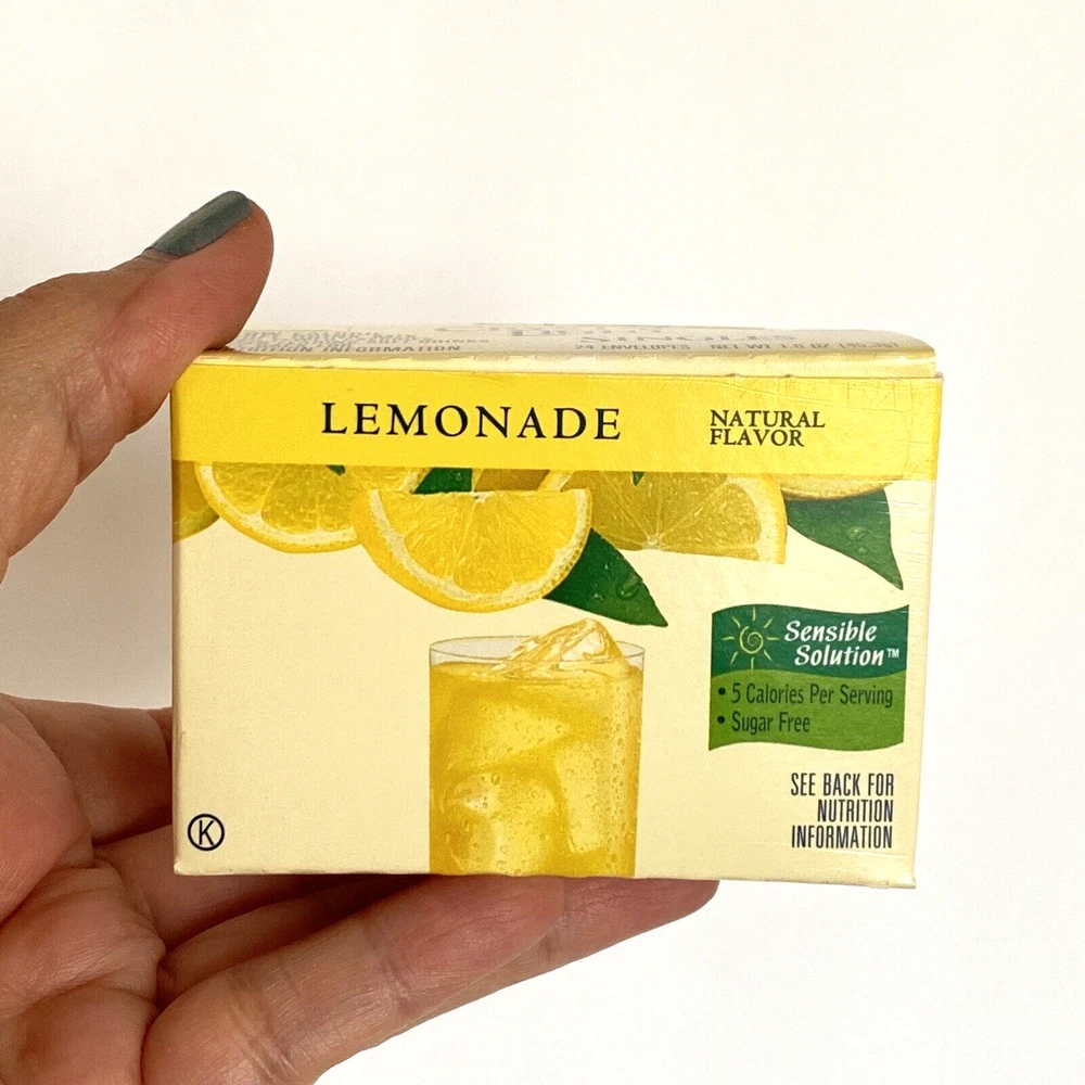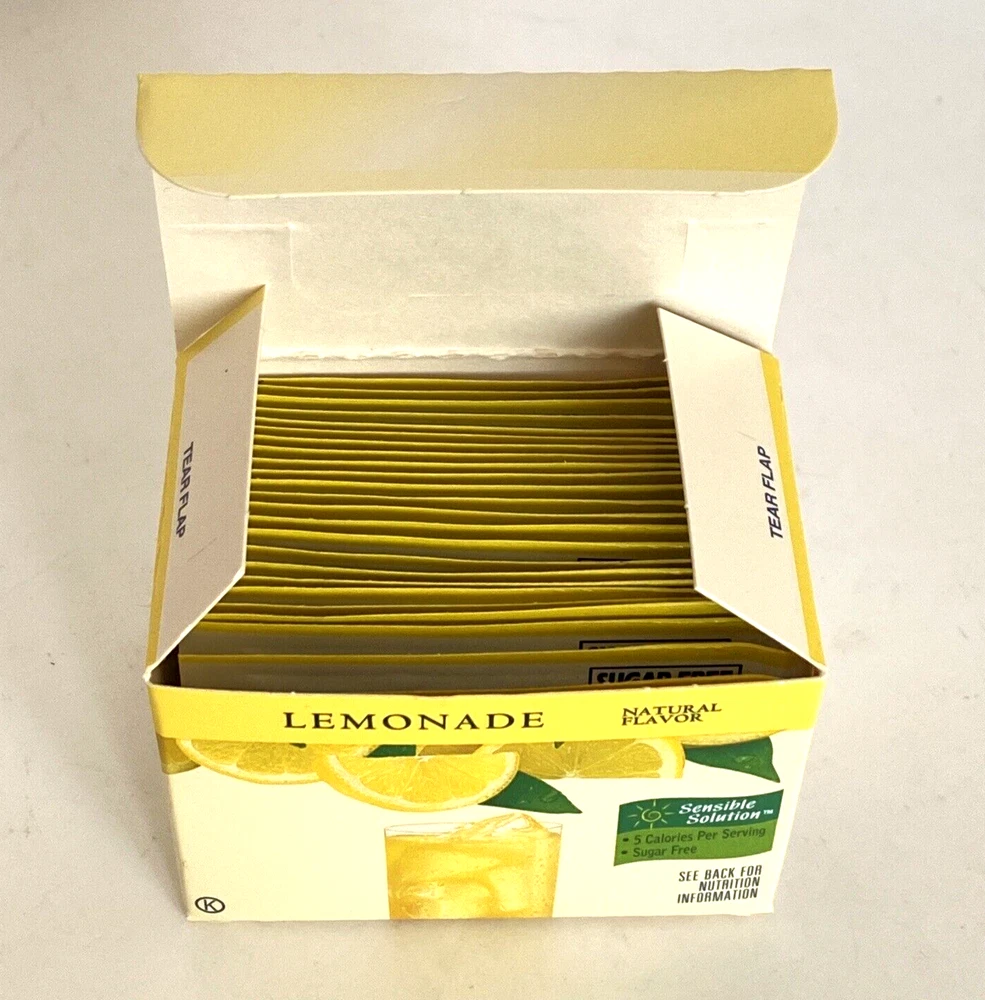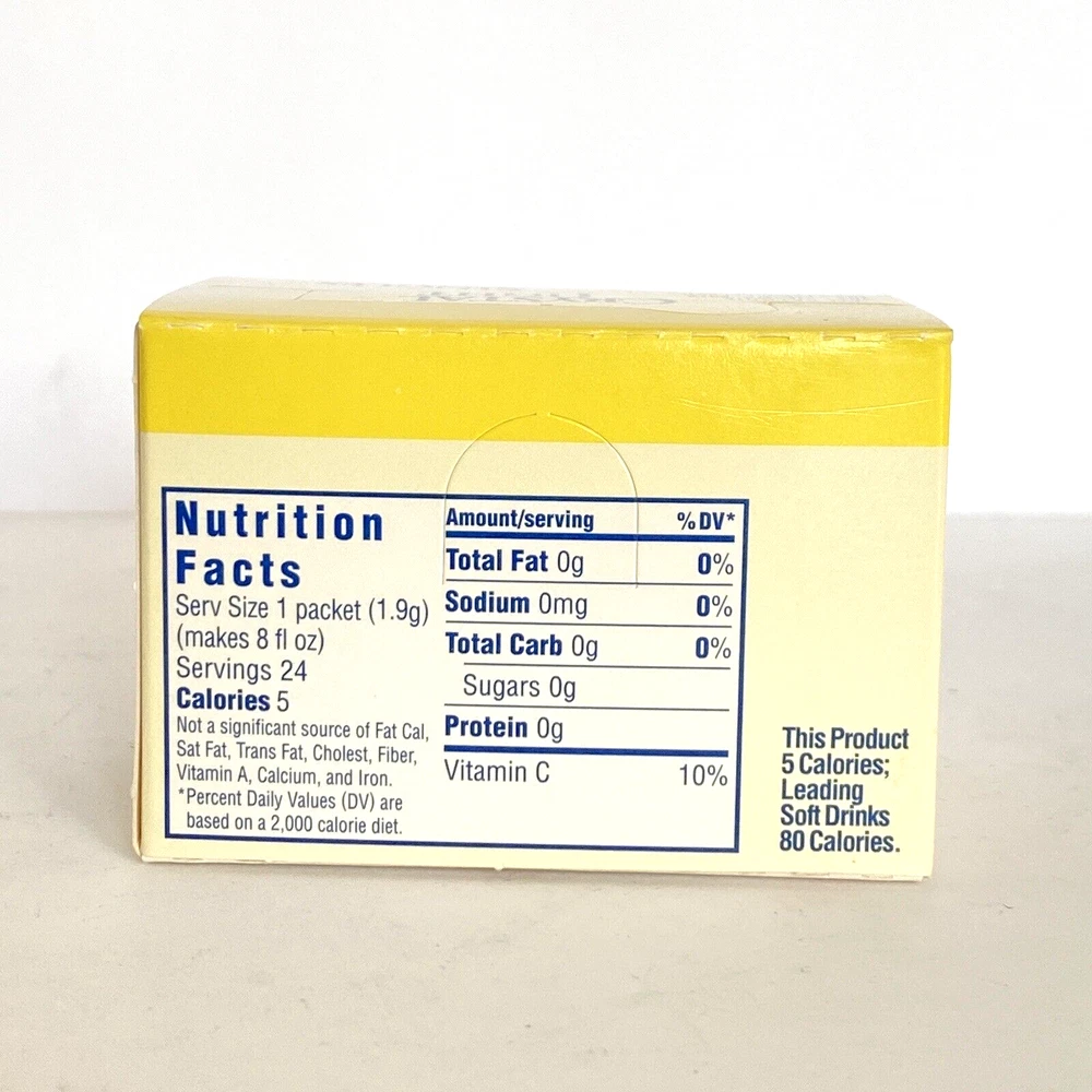 Crystal Light Singles Sugar-Free Lemonade Natural Flavor Low Calorie Soft Drink Mix 24 Envelopes (1-Box). Mix One Envelope into 8 Ounces Water for a Single Serving. 5 Calories per Serving. Contains Soy and Phenylalanine.
