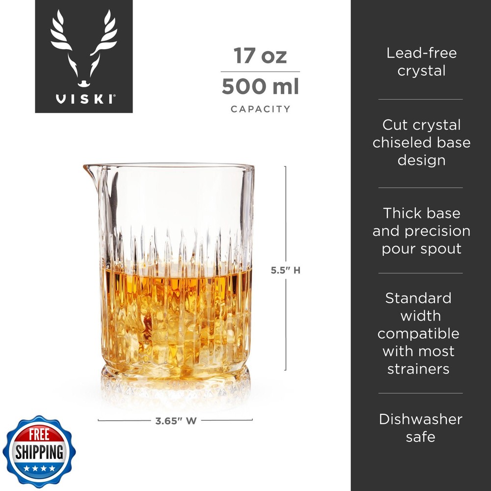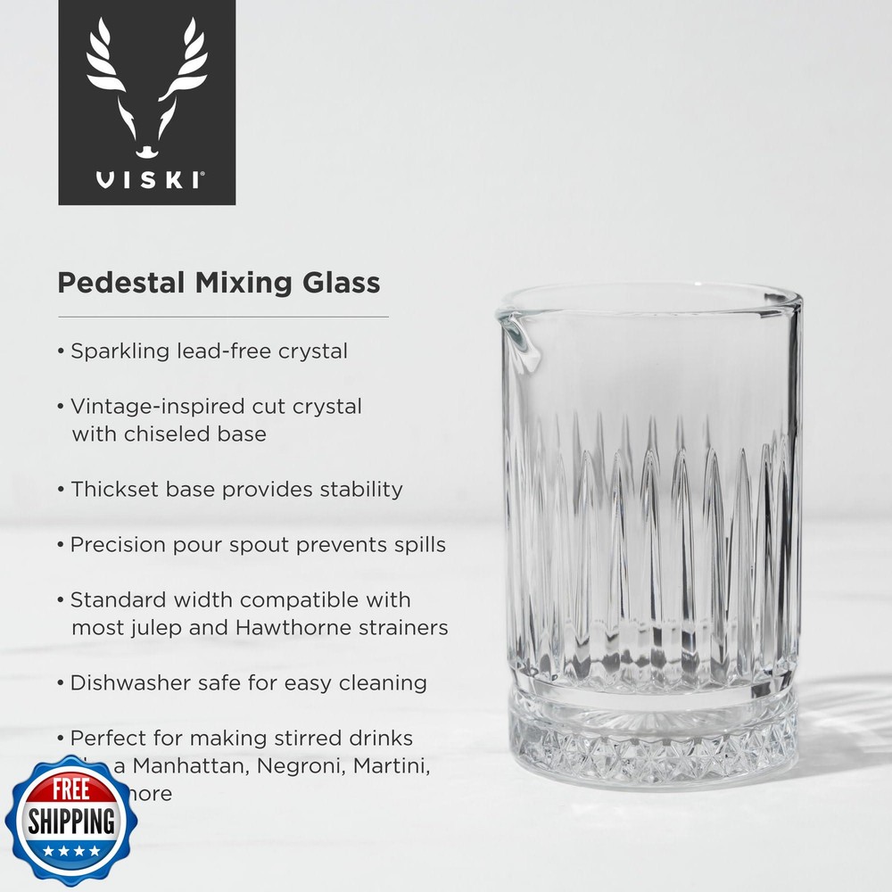 Viski Pedestal Crystal Cocktail Mixing Glass Perfect for Manhattan, Martini, Old Fashioned, Whiskey Sour, Negroni, Bartender Tools, Bartending Supplies, Home Bar Accessories, 17 oz, Set of 1 Features PROFESSIONAL GRADE COCKTAIL MIXER GLASS - Our 17 oz. lead-free cocktail mixer glass is designed and sized to mirror the professional grade equipment used by experienced bartenders, making it an ideal addition to any home bar. STURDY DESIGN AND FUNCTIONALITY - The platform base of our cocktail mixing pitcher ensures stability, allowing you to swirl your cocktail with a barspoon in one hand while adding ingredients with the other, making the process seamless. ENTERTAINING STIRRING GLASS - Stirred cocktails are not only straightforward to prepare, but they also create an entertaining spectacle. This makes our crystal mixing glass an easy yet impressive way to have some fun during parties. VISUAL APPEAL - The transparent nature of our drink mixing glass spectacularly shows off the ingredients as you bartend, adding a touch of sophistication and artistry to your cocktail mixing. VERSATILE GLASS COCKTAIL PITCHER - Our glass mixer for cocktails is perfect for creating old fashioned stirring drinks or other cocktail variations. It's a must-have bartender tool, being both a practical and stylish option for your home bar. Shipping Free & Fast Shipping: We offer free shipping to most of the USA with a normal delivery time of 3-7 days. However, due to the current situation, additional delivery time (up to 3 weeks) may be required for some items. Alternative Carriers: We may use alternative carriers (e.g., USPS, FedEx, UPS) to ensure your package arrives safely and on time. Due to the use of multiple carriers, we are unable to provide a tracking number automatically. Handling Time: Orders are processed and shipped within 1-2 business days of receiving cleared payment. Shipping Restrictions: Shipping to Alaska, Hawaii, Puerto Rico, Guam, and other US territories may incur shipping charges or delivery restrictions. Please contact us before ordering, or your order can be refunded/cancelled. State Restrictions: Certain items may not be shipped to California due to state regulations. Contact for Tracking Updates: If you require tracking updates or have any concerns about the delivery of your order, please feel free to contact us, and we will be happy to assist you. Return Policy 30-Day Hassle-Free Returns: If you are not completely satisfied with your purchase, you can return the item for free within 30 days of receiving it for a full refund or exchange. Easy Return Process: Contact us, and we will provide you with a prepaid return shipping label and detailed instructions. No Restocking Fee: There are no restocking fees for returns. However, the buyer is responsible for return shipping costs if the return is not due to a seller"s error. Refund Processing: Refunds will be processed within 1 business day of receiving the returned item in its original condition. Feedback Your feedback is extremely important to us. We strive to provide the best products and customer service possible. If you are satisfied with your purchase, please take a moment to leave us a positive review. If you have any concerns or issues with your order, please contact us before leaving negative feedback. We are committed to resolving any problems and ensuring your satisfaction. Contact Us If you have any questions or concerns, please feel free to reach out to our customer support team. You can contact us through the eBay messaging system. We are available Monday to Friday, 9:00 am to 5:00 pm EST, and we will do our best to respond to your inquiry within 24 hours. Thank you for supporting our small family business!