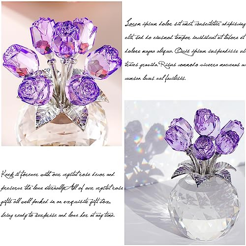 Menu 1. We require immediate payment. 2. We currently accept payment via eBay managed payments only. 3. Once payment is cleared, we will dispatch your shipment within 1-3 business days. Please refer to the "Shipping" tab for more information regarding shipping speed to your destination. Crystal Rose Figurines Gifts for Women Valentine's Day, Glass Floral Ornament for Mother's Day Birthday Christmas Amethyst Collectible Rose Flowers Anniversary Floral Presents for Her (Purple) Product description EXCELLENT GIFT FOR HER: The wonderful crystal roses figurine will be an ideal gift for mum, wife, daughter, girlfriend, sisters, best friends, aunt, colleagues, and so on. Especially on some special occasions like Mother's Day, Anniversary, Birthday Party, Thanksgiving, Christmas, Wedding and Engagement etc. To surprise her bringing happiness and good luck ELEGANT DESIGN AND ROSE: The lifelike rose ornament is a universal symbol of noble and enduring love. The purple roses represent mystery, uniqueness, maturity, and deep love. It is regarded as a romantic flower by many people and is said to bring good luck and heighten your sense of joy and happiness. Keep it forever with our crystal rose decor and preserve the love eternally PREMIUM CRYSTAL AND CRAFTS: Our Rose Flower Keepsake is made of K9 crystals, without impurities. The crystal at the bottom is polished into multiple facets, which can better refract the rainbow lights. The glass flowers match with silver metal stems and leaves, increg the sense of splendor, detail, and elegance. Size: 7*7*13cm/2.75*2.75*5.11"; Nw: 530g/1.17lb. DAZZLING ORNAMENTS: The rose bouquet artwork will be stunning decor in the sun, bringing a touch of gorgeousness to your home, like a table display, festival celebration, wedding party, and so on. It can stand freely on your nightstand, bookshelf, cabinet, fireplace, display stand, etc. Adorning your home and creating an elegant, vivifying, harmonious, and romantic atmosp. It can add color and sparkle to any place, and make her happy whenever she sees it READY TO BE GIFTS: All of our crystal rose gifts all well packed in an exquisite gift box, t are a wish card and a wipping cloth, being ready to surprise and love her at any time PLEASE MESSAGE US IF YOU HAVE ANY OTHER QUESTIONS, AND MANY THANKS FOR READING ALL OF THIS. Copyright ©#. All Rights Reserved.