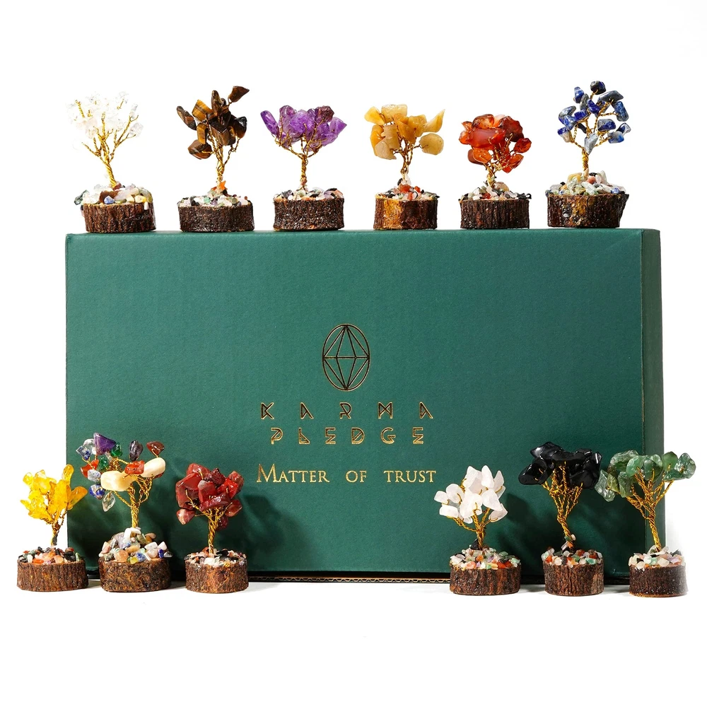 Crystal Tree Gifts for Women, Set of 12 Handcrafted Tree of Life Chakra Heali...