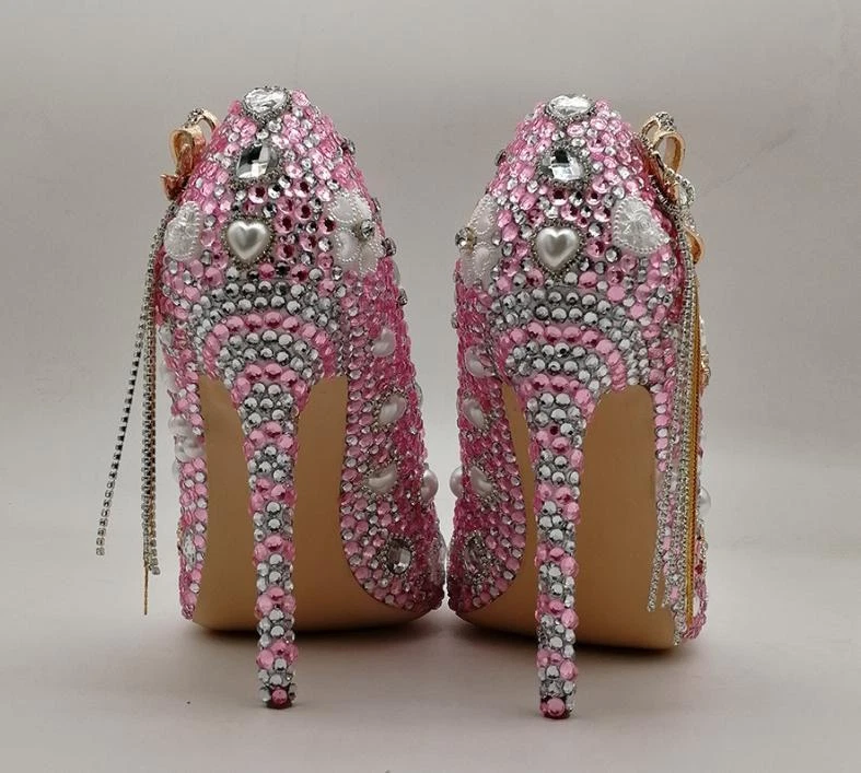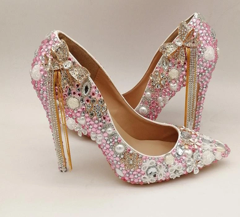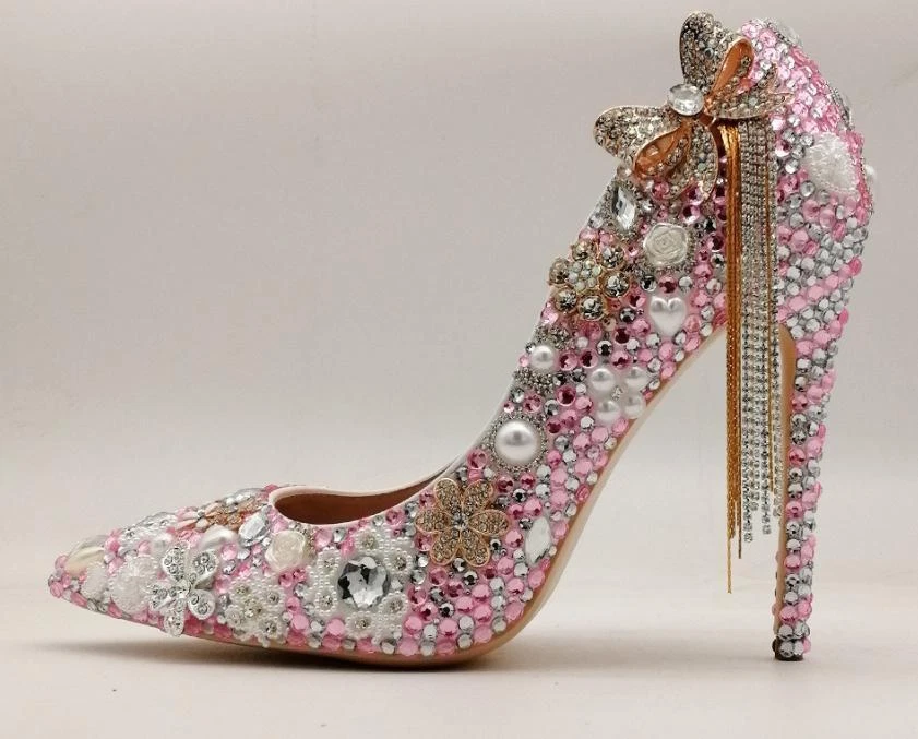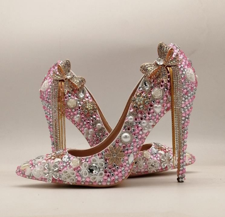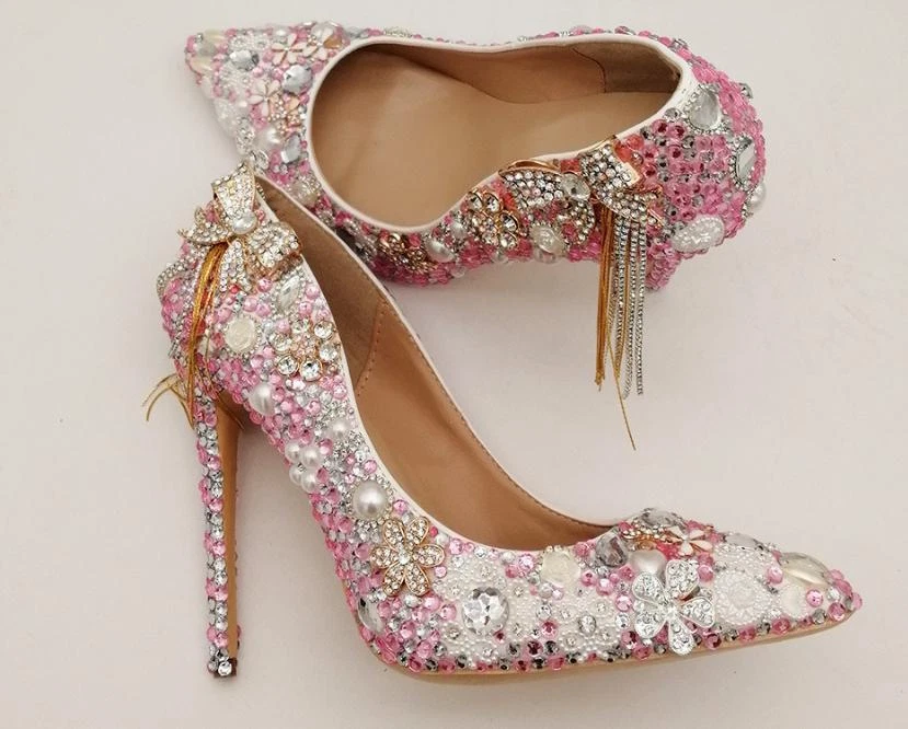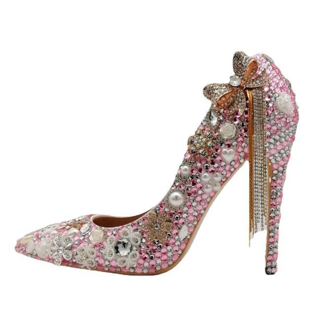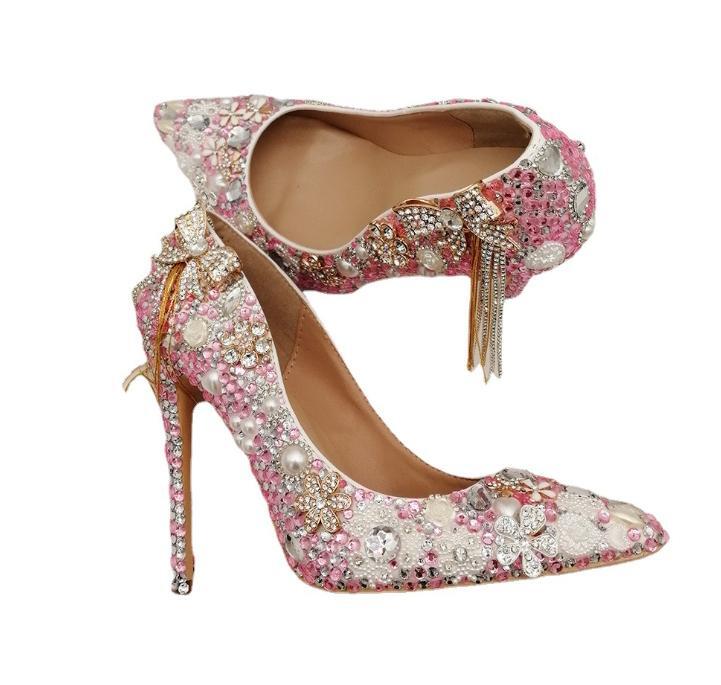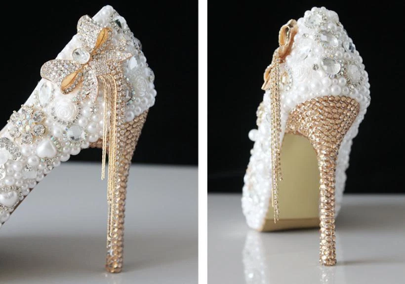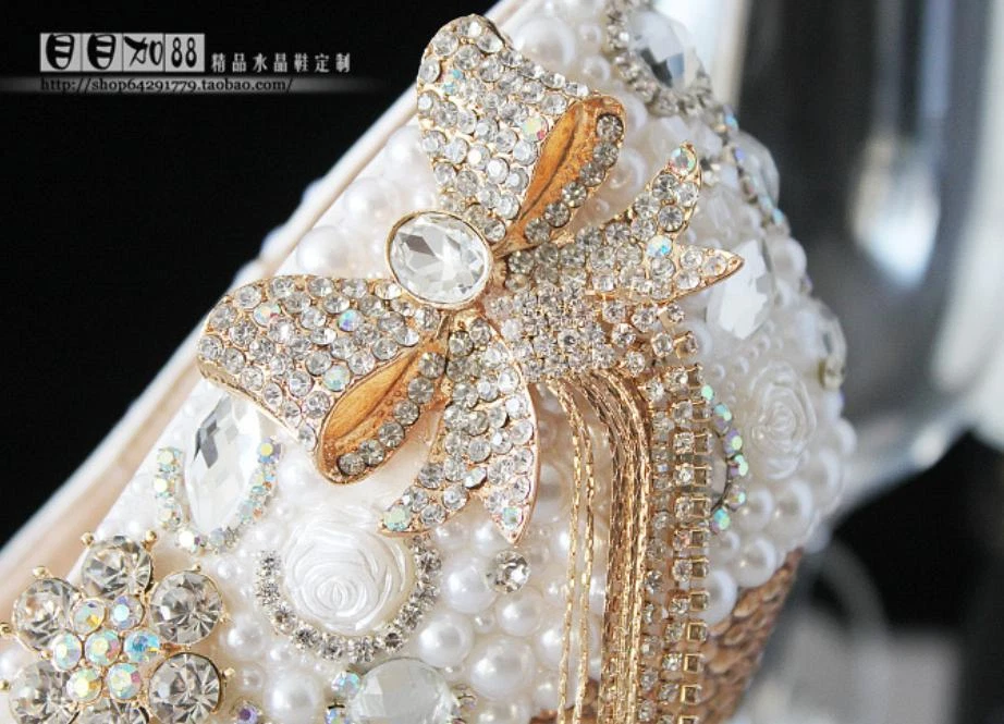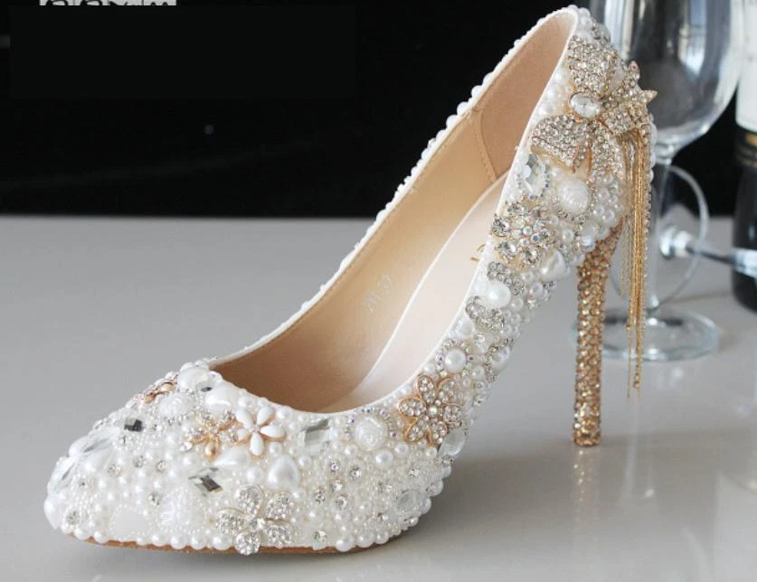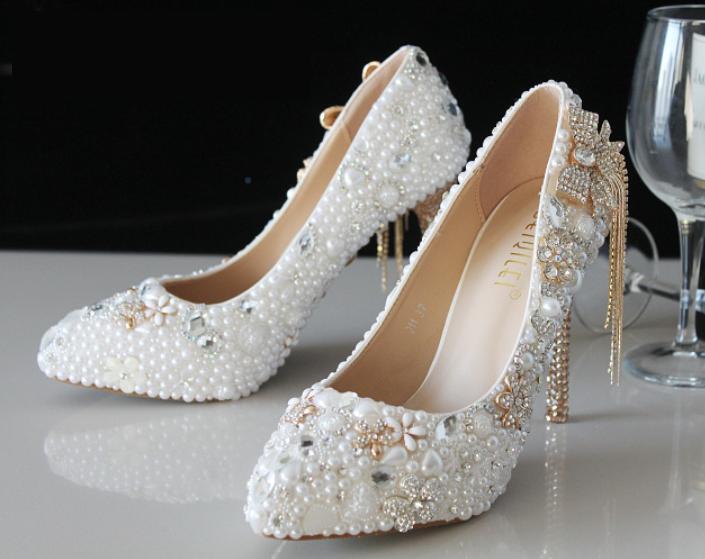 Crystal Womens Wedding Bridal Slip On Party Pearl Diamond Pumps Sexy Shoes Hot