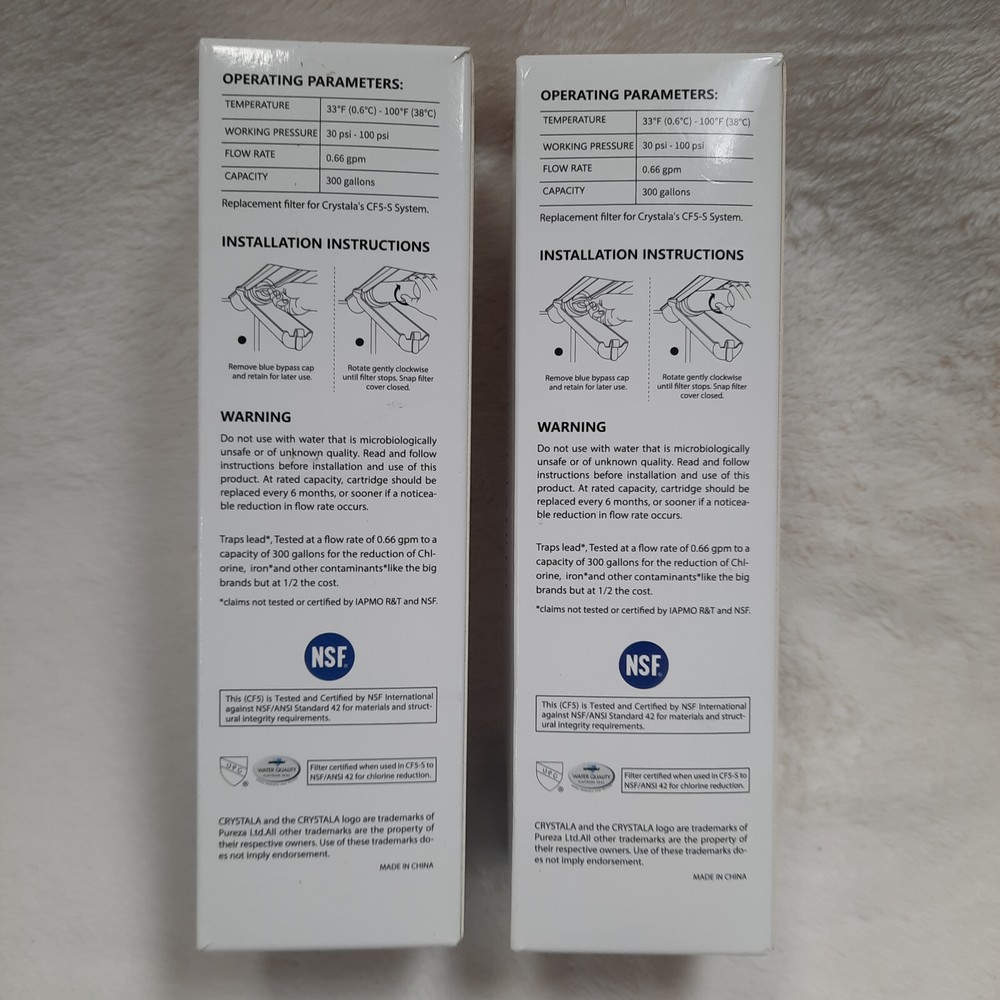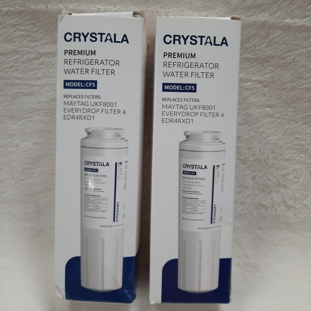 This lot of two Crystala Premium Refrigerator Water Filters CF5 is perfect for those who want to keep their water clean and fresh. These filters are compatible with Maytag UKF8001 and Everydrop Filter 4 models, and are designed to remove lead and other contaminants from your household water. The filters have a capacity of 300 gallons and use carbon/charcoal filtration method to ensure that your water tastes great every time. Each filter is sealed for added protection and has a model number of CF5. These filters are suitable for use in small kitchen appliances and are a great addition to your water purification and soda maker.