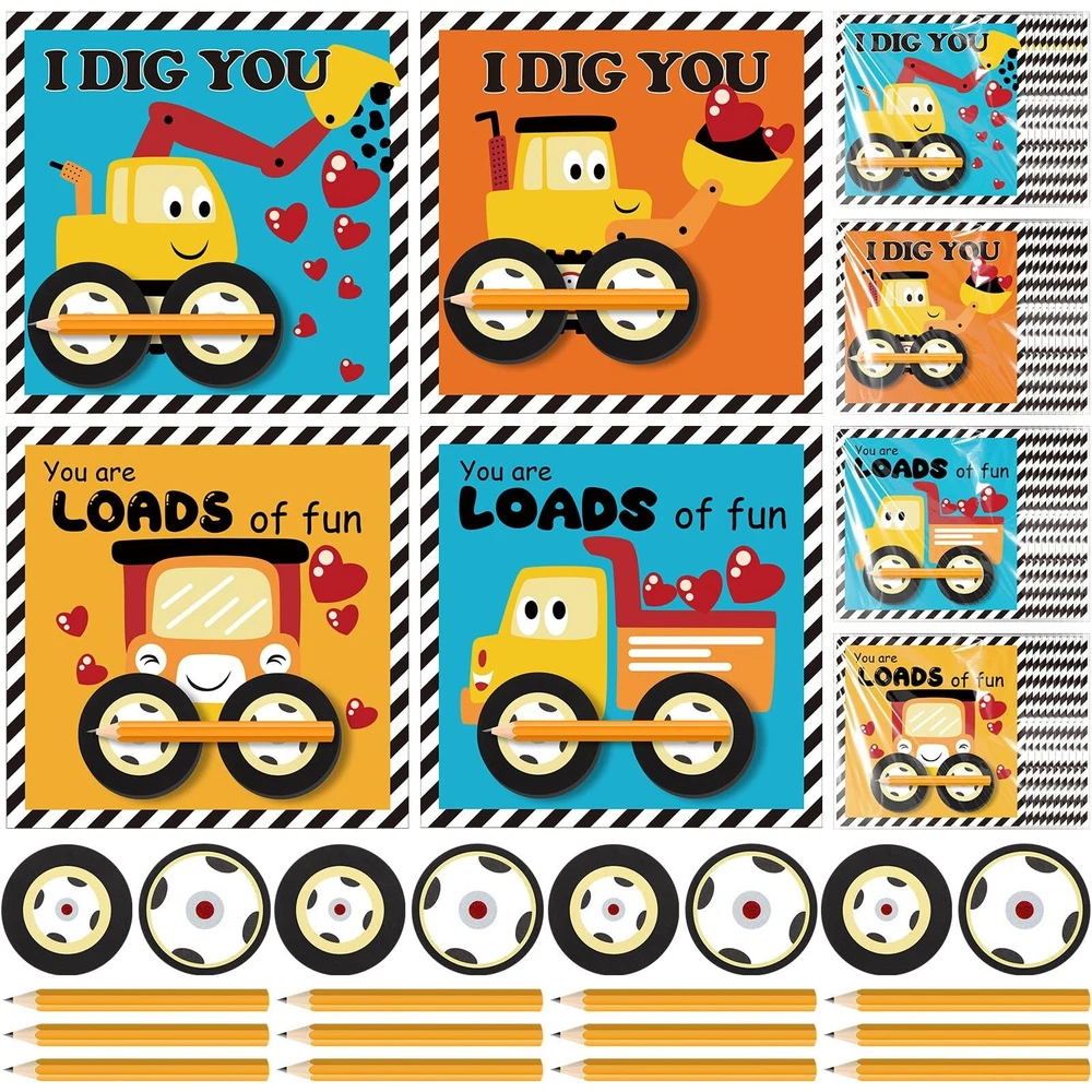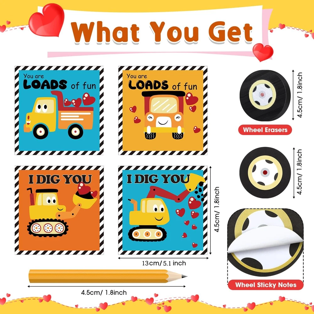 Ctosree 24 Packs Construction Party Favors Bulk Construction Valentines Cards Stationery Set Mini Car Wheel Erasers Stick Notes Pencils Exchange Gift Game Prizes Tractor Party Supplies Product Details Brand: Ctosree Unit Count: 24.0 Count Item dimensions L x W x H: 6.3 x 3.94 x 2.36 inches Item Weight: 0.44 Pounds Manufacturer: Ctosree Product Dimensions: 6.3 x 3.94 x 2.36 inches Item Weight: 7 ounces Country of Origin: China Item model number: RIM-Ctosree-3492 Manufacturer recommended age: 14 years and up Manufacturer: Ctosree Construction Party Favors Bulk: our generous inclusion has 24 construction Valentine's Day cards, 24 stick notes, 24 wheel erasers, 24 pencils, and 24 opp bags, they are plentiful enough for a fun, memorable Valentine's party or gift giving spree Elaborate Valentine's Day cards: the construction Valentine cards are designed around the theme of construction, and there are 4 different styles to make the cards more attractive, you can pack wheel sticky notes, wheel erasers, pencils, and cards in clear self adhesive bags and distribute them to lovers, friends, coworkers on Galentines or Valentines Day Quality Material: enjoy construction party favors made from quality materials, the construction greeting cards are made from 300g coated paper and stick notes use 80g double adhesive paper, ensuring durability and strength, both are ideal for love notes, reminders, or simply getting into the holiday charm Convenient Sizes: the Valentine exchange gifts, from construction greeting cards measuring about 5.1 x 5.1 inches to stick notes and wheel erasers about 1.8 inches in diameter, are ideal for various purposes, and the pencils, about 1.8 inches long, fit in most purses or pockets for easy carrying Multipurpose Use: these versatile Valentine's Day stationery sets can be applied for note taking, reminders, greetings, classroom prizes, and tokens of appreciation, this construction gift set is not only ideal as a Valentine's Day exchange gift, but also as construction party favors, ideal as gifts for family, friends, and lovers Features: Appeal to the eyes with the multicolored Valentine's Day gifts these Valentine's Day gifts party favors offer. The vibrant hues give life to the construction greeting cards, stick notes, and other contents of the package, making each piece enjoyable and aesthetically pleasing to use. Experience the charm of giving and receiving with these construction Valentine gifts. The construction themed set not only promotes creativity but also makes an impressive gift due to its unique design and functional practicality. Share the love this Valentine's with this innovative gift solution. Specifications: Material: Construction greeting cards: 300g coated paper Stick notes: 80g double adhesive paper Color: multicolored Size: Construction greeting cards: about 5.1 x 5.1 inches/ 13 x 13 cm Stick notes: about 1.8 inches/ 4.5 cm in diameter Wheel erasers: about 1.8 inches/ 4.5 cm in diameter Opp bags: about 5.91 x 7.09 inches/ 15 x 18 cm Package includes: 24 x Construction greeting cards 24 x Stick notes 24 x Wheel erasers 24 x Pencils 24 x Opp bags Notes: Manual measurement, please allow slight errors on size. The color may exist a slight difference due to different screen displays.