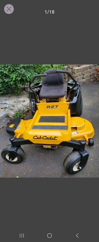 The Cub Cadet RZT 50 zero turn lawn mower with a 27 hp Kohler motor and 390 hours is a powerful and efficient gardening tool. It features a self-propelled drive type with rear-wheel drive, a 4-stroke engine, and a 5-gallon tank capacity. The mower has a cutting width of 42 inches, adjustable height settings, and a zero-turn feature for easy maneuverability. With a durable construction of aluminum, plastic, and steel, this lawn mower is built to last and withstand tough outdoor conditions. The yellow color, 12-volt battery, and convenient features like bumper, electric start, and hydrostatic transmission make it a versatile and reliable choice for your yard and garden maintenance.