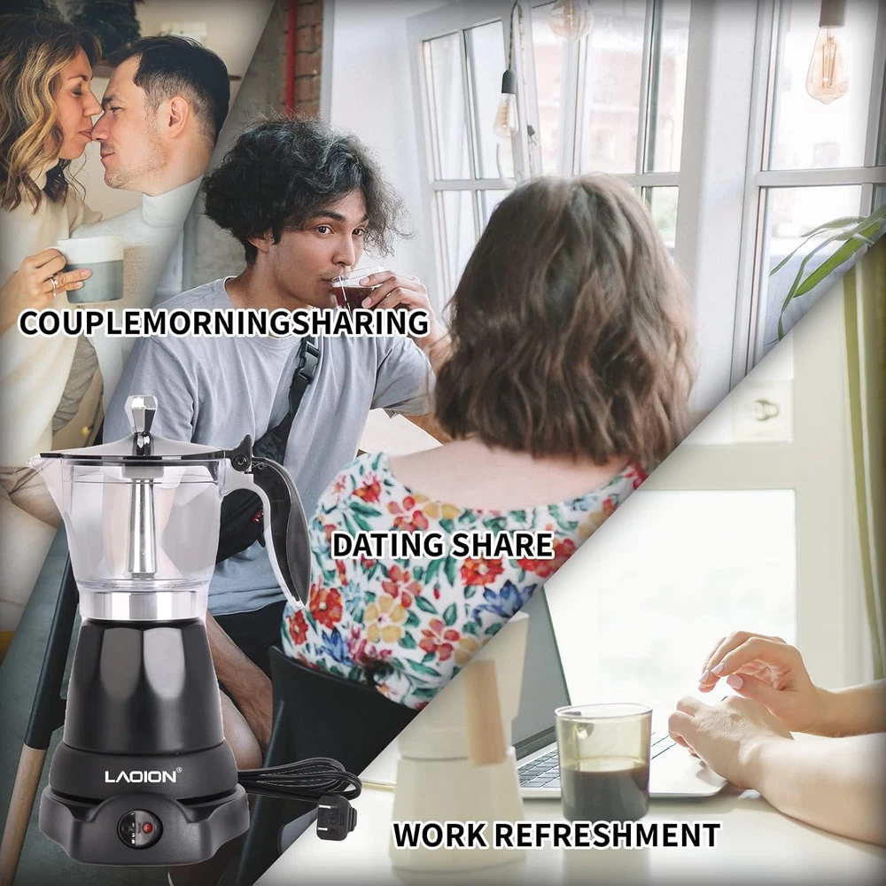 Store New Arrivals Add to Favorite View Feedback Contact Cuban Coffee Maker, 6 or 3Cup Electric Espresso Coffee Maker, Portable Cafeteras Electricas Modernas, Electric Moka Pot with Detachable Base & Overheat Protection, Coffee Gift for Home Travel Description Item model number Espresso Maker Style Modern Number of Items 1 Item Weight 26 Pounds Wattage 480 watts Unit Count 1.0 Count Manufacture Year 2025 Special Feature Auto Shut-Off, Detachable Base, Permanent Filter, Portable Model Name Espresso Maker Specific Uses For Product Cappuccino, Espresso, Latte, Mocha Customer Package Type Standard packaging for color boxes Item Weight 2.56 pounds Human Interface Input Buttons Capacity 6 Cups Material Aluminum Filter Type Reusable Exterior Finish Metallic Color Black Coffee Maker Type Espresso Machine Coffee Input Type Ground Operation Mode Semi-Automatic Voltage 120 Volts Recommended Uses For Product Backpacking, Camping, Hiking, Traveling Included Components Filter Product Dimensions 5.12"D x 7.48"W x 10.63"H 【Luxury Transparent Container】LAOION coffee espresso machine for home with clear transparent top. You can monitor the espresso coffee situation and savor the entire brewing process, making the best traditional espresso easy. 【Convenient & Fast】Without complicated operation and heat stove, just fill the boiler with fresh water until reaching the safety valve(visible inside the boiler), next fill the funnel filter with good quality, medium-ground coffee, then tighten the coffee maker and rest it on the base, finally press the switch wait 5 minutes and you can enjoy an authentic Italian Moka coffee. 【Safe & Food-Grade Material】This cuban coffee maker electric's upper pot is made of BPA free&Heat-resistant plastic, lower pot is made of premium food-grade aluminum, non-toxic and rust-proof. And it have 2 auto-shut off to prevent overheating. One is that when the pot leaves the electric base it will automatically turn off the power supply, and the other is that when it is heated to boiling point, it will also automatically stop heating. 【6-Cup Moka Pot (300ml)】 – Ideal for Rich, Authentic Espresso.This classic stovetop brewer makes 6 servings (about 1.75oz each) – the traditional Italian way to enjoy strong, aromatic coffee. The 300ml capacity is designed for small espresso cups (not standard mugs), delivering concentrated flavor in every drop. Pro tip: Fill the base with water just below the safety valve, use finely ground coffee (no tamping!) for best results. 【Quick Tips to Prevent Leaks】1.When adding water, NEVER fill past the safety valve - this is the #1 cause of spills. 2.For coffee grounds, just spread them evenly - don't pack or overfill. 3.Before brewing, always twist the top and bottom chambers until snug (finger-tight is enough!). These simple steps keep your moka pot leak-free. Happy brewing! Product Description Electric Espresso Maker Without complicated operation and heat stove,Just 5 minutes you can enjoy an authentic Italian Moka coffee. Transparent Containe You can easily check the situation of espresso and savor the entire brewing process. Coffee Filter Funnel Food-grade aluminum filter with good corrosion and easy to clean. ABOUT US We offer the best prices around on high quality products. Our E-store includes media such as books, movies, music and games while offering electronics, toys, sporting apparel, clothing, tools, general home, garden items and more. SHIPPING We are always working hard to ensure your package arrives as soon as possible. Please understand that some factors like weather, high postal traffic, and the performance of shipping companies are outside of our control. We offer free shipping to the lower 48 states and ship within 2 business days of payment, usually sooner. We do not accept P.O. Boxes. Please provide a physical address. For shipping outside of the continental USA, we only use eBay's Global Shipping Program.The item is shipped to KY and then sent to the rest of the world. International customers are responsible for all duties and taxes. Continue to check out in order to calculate costs for shipping the item to your country. Messages regarding eBay's Global Shipping Program MUST be directed at eBay EXCLUSIVELY. RETURNS We offer a 30-Day Return Policy on items which you are not completely satisfied with. You have the option for a full-refund or an exchange of the item. No returns are available on items shipped outside of the USA. PAYMENT We accept PayPal. CONTACT US This page content is yet to come Please ad us to your favorite seller and visit again later Thank You CUSTOMER SATISFACTION We try our very best to make sure every customer is completely satisfied. If there's a problem, message us! We're happy to help. WE ACCEPT Copyright © 2021 AutoDS. | All Rights Reserved