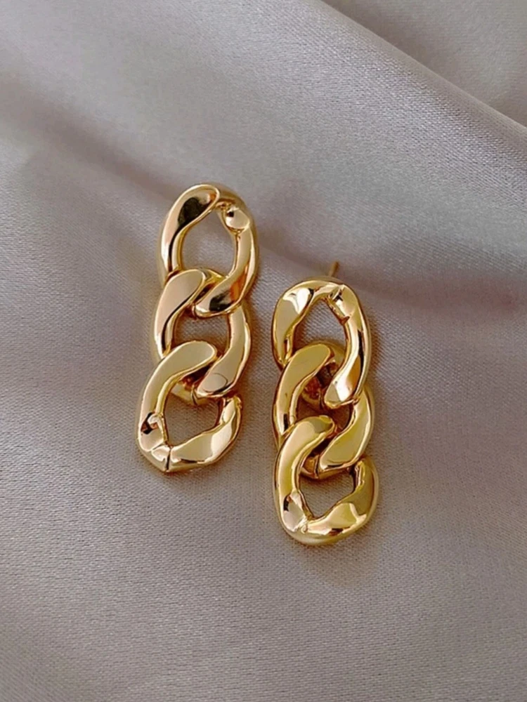 Cuban Link Chain Earrings Gold