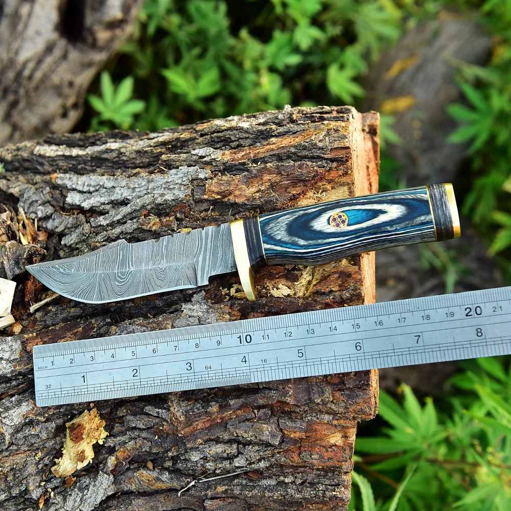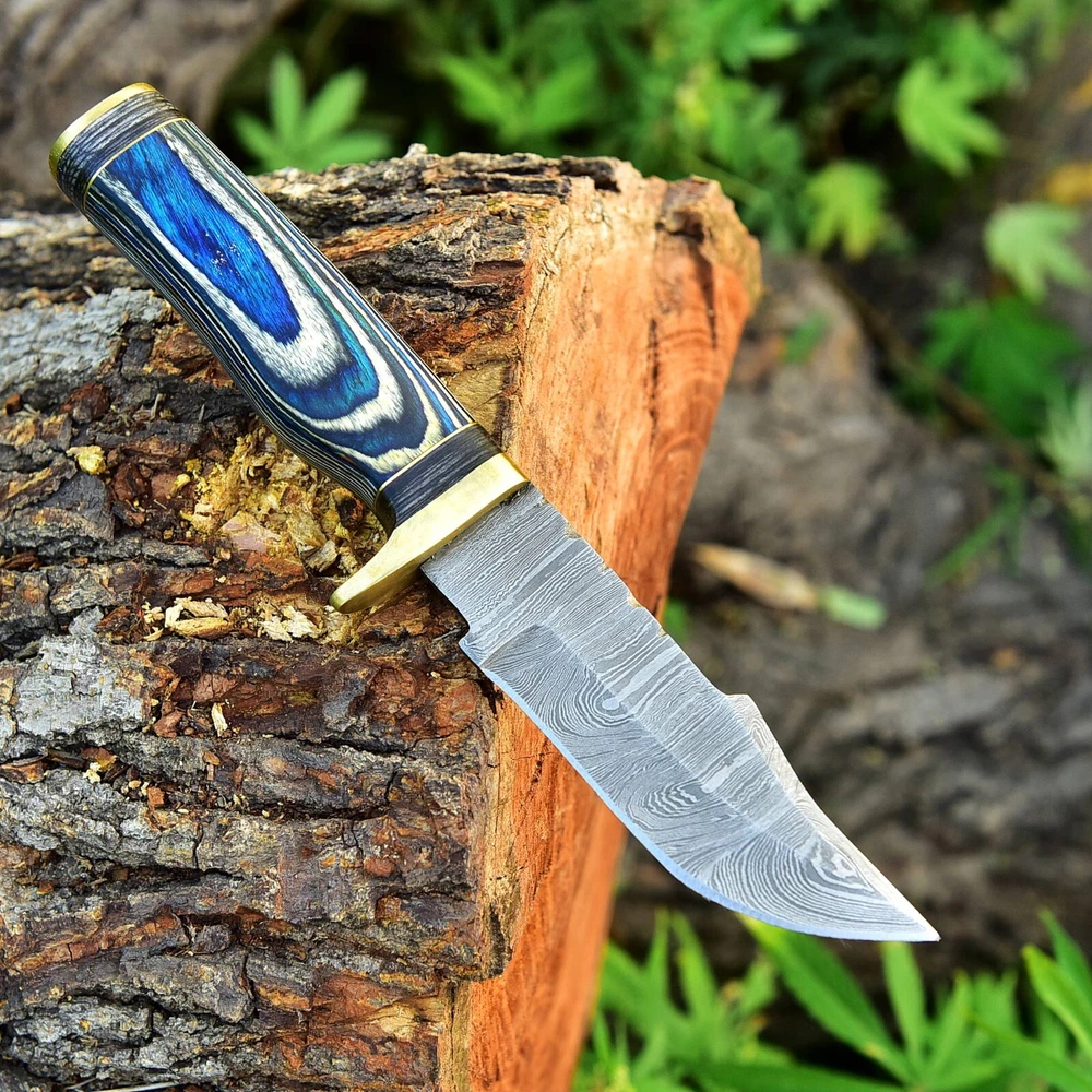 Cuchillo de supervivencia artesanal para exteriores de acero Damasco SKINNING X430