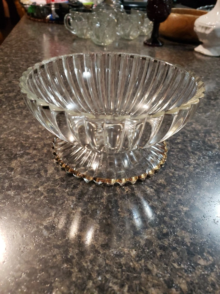 This 6.5" diameter glass pedestal bowl is perfect for your serving needs. The ribbed design adds a touch of elegance to your table setting. The bowl is made of high-quality glass and is suitable for a variety of occasions. The brand is unmarked and the bowl is ideal for decorative use or serving purposes. The bowl's material is durable and easy to clean. Get ready to impress your guests with this beautiful glass pedestal bowl.