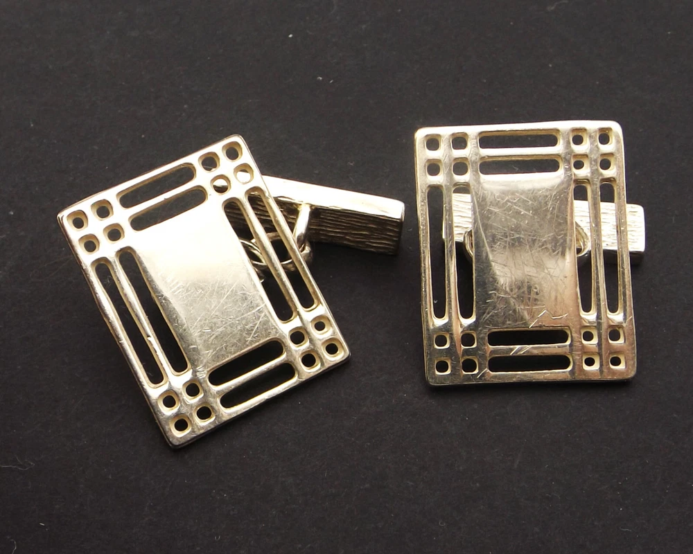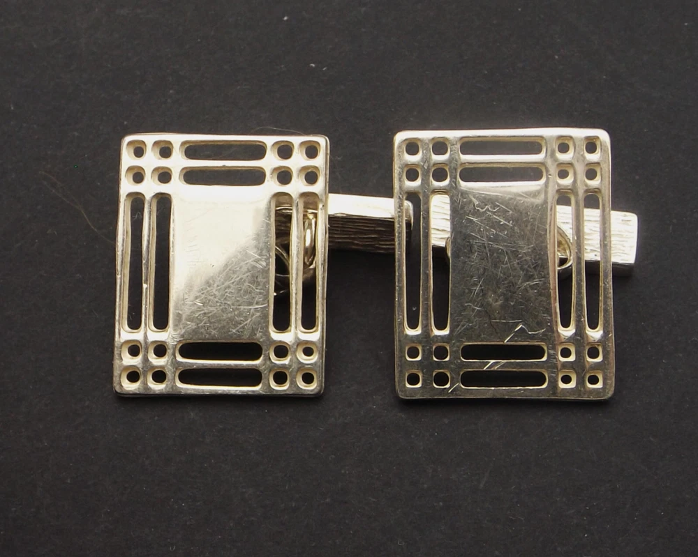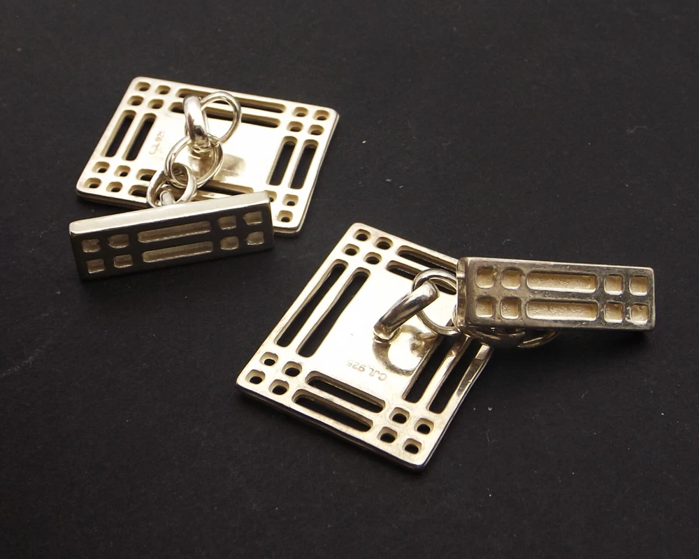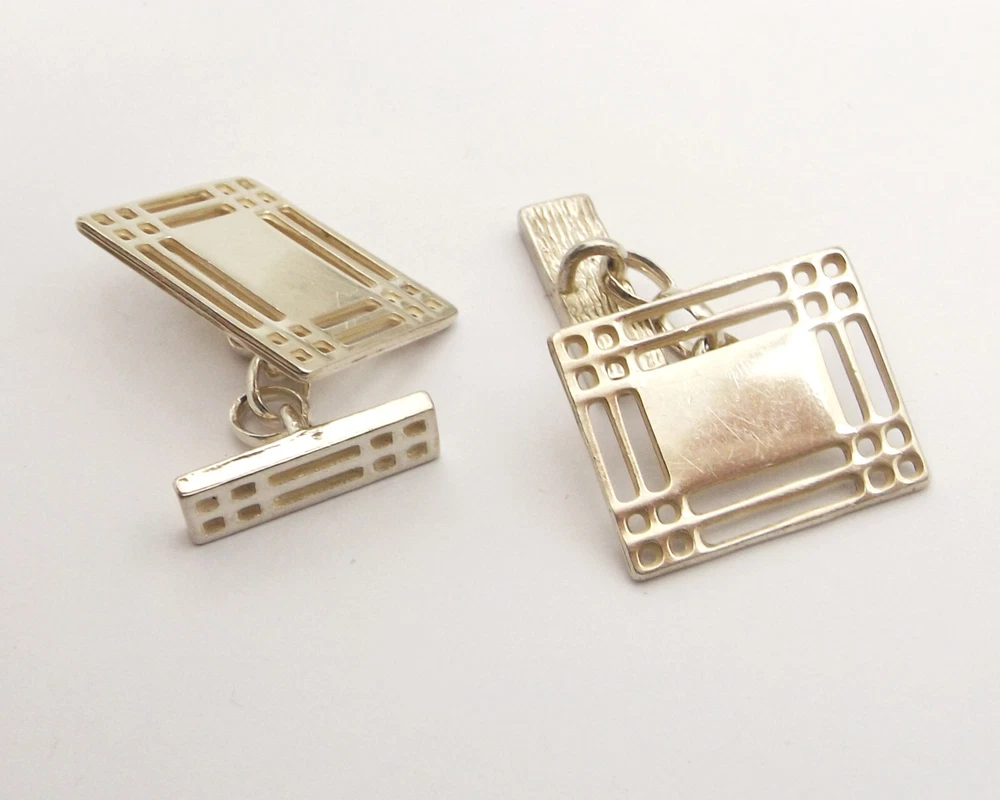 STERLING SILVER CUFFLINKS OBLONG SHAPE SIMPLE RENNIE MACKINTOSH STYLE DESIGN BY CARRICK JEWELLERY LTD CHAIN LINK MARKED 925 FOR STERLING SILVER AND CJL FOR CARRICK JEWELLERY LTD EACH CUFFLINK FRONT MEASURES 15 X 20 MM 9/16" X 13/16" VERY GOOD USED CONDITION Will be sent in a new cufflink box Always happy to combine postage, just let us know when you are finished and we will send a combined invoice. We post every day Monday to Friday, and try to post same day or next day - happy to post Saturday if you ask! We mainly sell used items, so there may be wear, but we try to describe accurately - we might occasionally miss something or even completely mess things up - we are human - but never intentionally and will always try to resolve any issues. Contact me via eBay messages if you have any concerns with your purchase. Please be aware if buying outwith the UK your purchase will have to go through your country’s Customs on arrival - you may be charged import duty and possibly other charges, any such charges are not covered in this sale. Any questions, just contact us via messages, we will get back to you as quickly as we can.