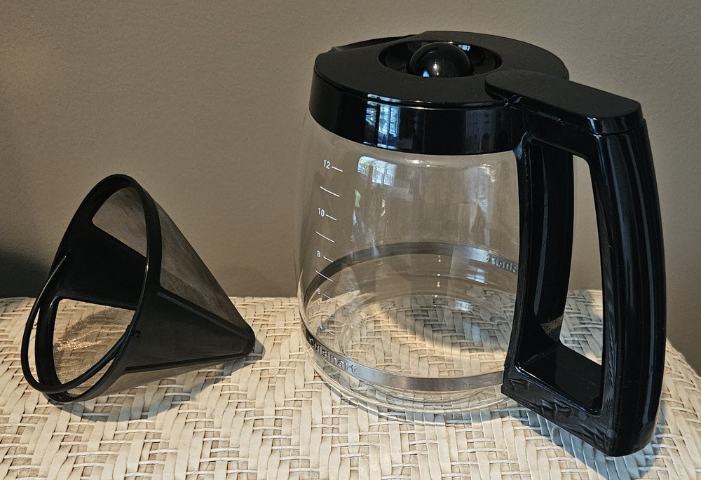 Up for auction is a CUISINART COFFEE MAKER 12 CUP GLASS REPLACEMENT CARAFE POT & METAL FILTER. They are both in good used condition. It comes from a smoke free home. Please feel free to email me any questions regarding this auction prior to the end of the auction . Buyer to pay shipping costs. I will refund your money ONLY if I have misrepresented the item in my description. I try to give a very honest and detailed description. Please give me the courtesy of sending payment within 3 days of the close of this auction. Thank you for your cooperation. Good luck and thanks for viewing my auction. Please take a moment to view the other great items I have listed.