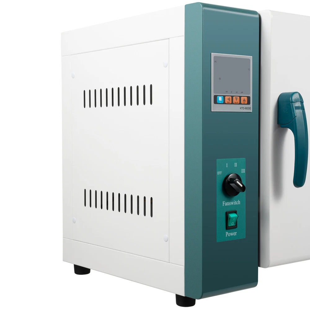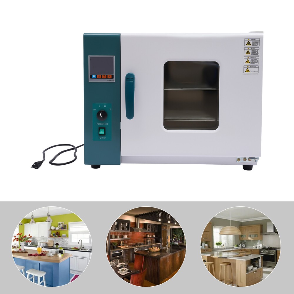 Description Baked food can always catch our taste buds, whether children or the elderly. So it is necessary to learn to bake healthy food at home. This 45L capacity convection oven is the first choice for family or commercial use. It can meet the two major functions of baking and insulating food. Use it without crunching and messy cleaning! Details Observation Window: The super-large double-layer tempered glass observation window is convenient for observing the changes of the items in the box. Synthetic Silicone Sealant Strip: The new synthetic silicone sealant strip makes the appearance beautiful. It can operate at high temperatures for a long time. Anti-slip Feet: The bottom anti-slip feet can effectively maintain the stability of the machine and prevent the tabletop from scratches. Moisture Drainage Hole: The moisture drainage hole at the top can quickly discharge the moisture inside to maintain a good drying effect. Specification Model: 101-0AB Material: Cold Plate+Stainless Steel Color: White Finish Type: Spraying Plug Type: US Voltage: 110v, 60Hz Power: 1500w Capacity: 45L/12gal Temperature Control Range: +10-300 ℃/50-572℉ Temperature Resolution: 0.1℃/32.2℉ Temperature Fluctuation: ± 1℃ Package Size: 70*57*60cm/27*22.44*23.62in Gross Weight: 37kg/81.6lbs Net Weight: 32.5kg/71.7lbs Package Included 1*Convection Oven 1*English Manual Notes 1. For the safety of the experiment, please install the external grounding device, and select the power supply matching the equipment to install the leakage protection device. The equipment is strictly forbidden to be used in the experiment of flammable, explosive, toxic and corrosive substances. 2. Place the equipment on a dry platform or the ground, and keep it more than 50cm away from the wall. Place the experimental items on the tray as needed, connect the power, turn on the switch, and set the required temperature according to the operating instructions of the intelligent instrument. 3. Please turn off the power when the equipment is not in use and keep it dry and clean. 4. Please read the manual completely before installation and use, and pay particular attention to the safety instructions included. 5. The temperature deviation in the working room is large after the fan is shut down. The fan should not be shut down without special circumstances. 6. Please allow the slight color difference caused by the shooting light and 1-3cm error due to manual measurement, and make sure you do not mind before ordering. Healthy Diet: Air frying uses powerful super hot air to dry food, which is a healthier way to make delicious dry food. Excellent Performance: The high-quality stainless steel liner ensures excellent thermal insulation performance. Natural convection circulates the air to make drying faster and more evenly. Large Capacity: This 12gal capacity two-layer oven allows you to dry multiple ingredients or items at one time, thus saving time and electricity. Easy to Use: +10-300 ℃ adjustable temperature range, fan speed regulating switch, timing, temperature deviation correction, and temperature control self-setting can facilitate your drying. High safety: This oven avoids the safety hazards caused by open-fire drying. In addition, over temperature alarm indication can also improve your safety when using. Low Noise: The hot air circulation system uses low noise self-cooling fan, which will not produce more noise during the drying process and will not interfere with your work or rest. Good Material: Its product shell is made of a high-quality cold plate, and its surface is treated by a spraying process, which is not easy to corrode and rust, so you can safely use it for a long time. Easy to Clean: The high-quality stainless steel liner are both antifouling and easy to clean. You can use detergent and a wet towel to clean and dry.