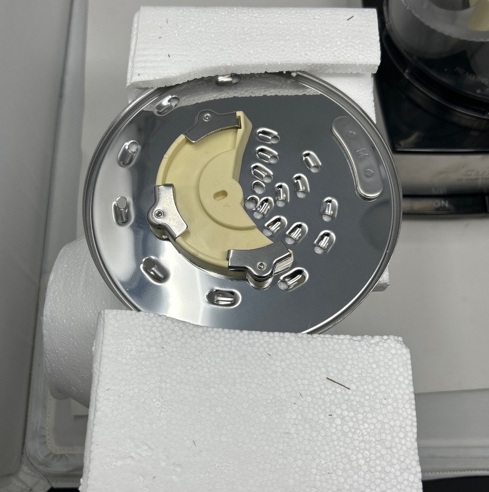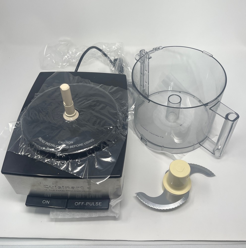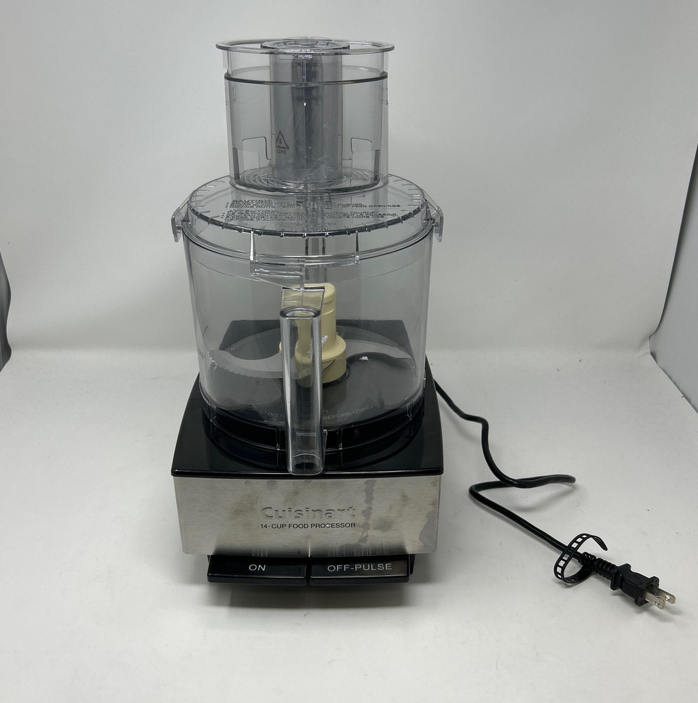 Condition: Used- Great Condition - Open Box Cuisinart Custom 14 Food Processor is a 14-cup stainless steel appliance with 720W power. It can slice, chop, and shred fruits, vegetables, and cheese. The full-size processor includes 3 blades for mincing and dicing various foods like dough. Its dimensions are 11" in depth, 15" in height, and 8" in width, weighing 18 lbs. Perfect for kitchen tasks such as meal prep and baking.