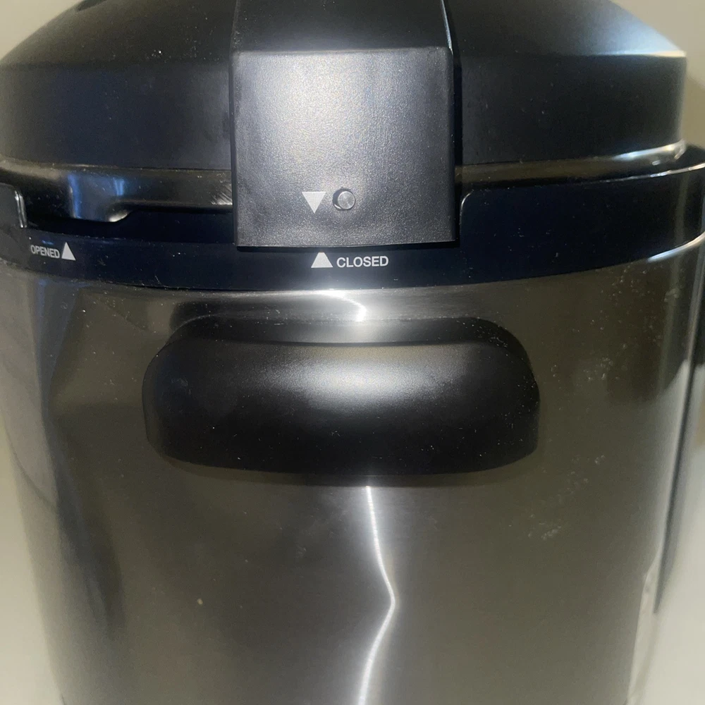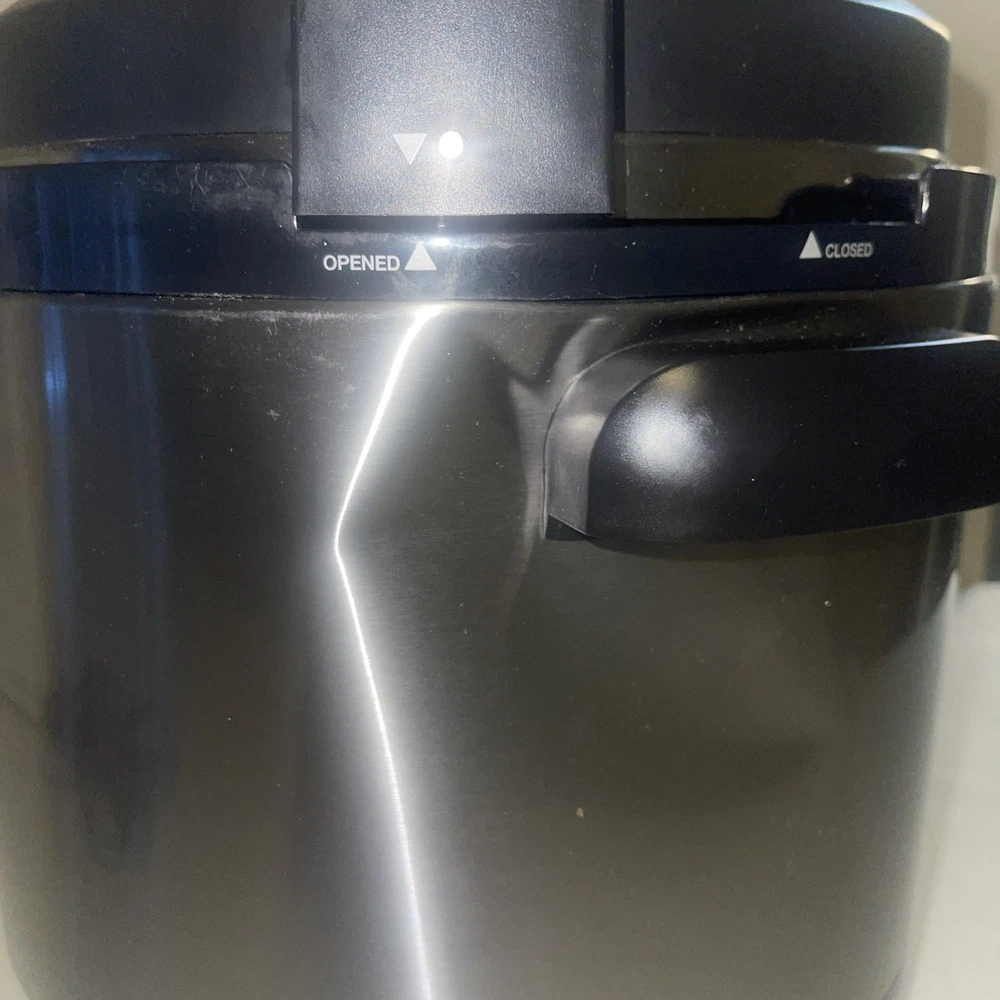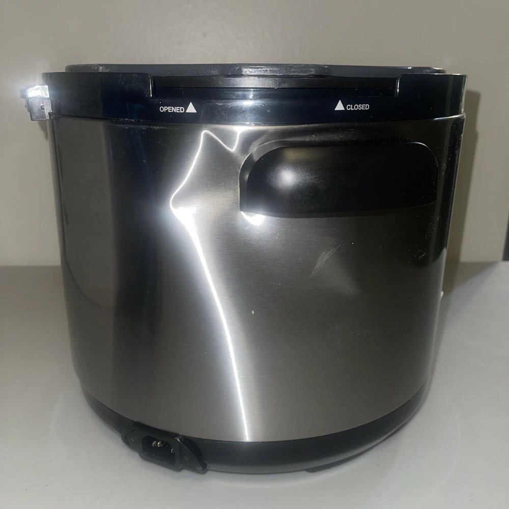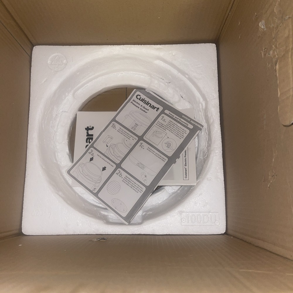 This USED Cuisinart electric pressure cooker is a versatile kitchen appliance that can help you prepare a variety of dishes quickly and efficiently. With a capacity of 6 quarts and a powerful 1000W motor, this cooker can cook food in a matter of minutes. The cooker features a brushed finish and is made of stainless steel, making it durable and easy to clean. It comes with a variety of features, including a timer that can be set up to 99 minutes, a drip tray, and a non-stick, dishwasher-safe pot. The cooker is also BPA-free and has an automatic and programmable mode. Additionally, it is portable, making it easy to take with you on the go. This multi-cooker is perfect for anyone who wants to save time and money on their meals.