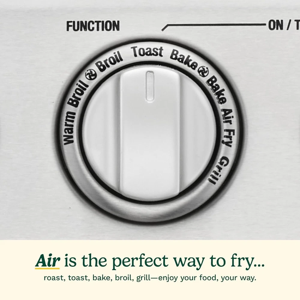 VERSATILE COOKING FUNCTIONS: This premium 1800-watt Cuisinart Air Fryer Toaster Oven is equipped with an air fry setting plus toast, convection bake, bake, convection broil, broil, grill, and warming feature SPACIOUS CAPACITY: The Cuisinart Air Fryer Toaster Oven is large enough to toast 6 slices of bread, air fry 3 lbs. of chicken wings, bake a 12” pizza, or roast a 4-lb. chicken. SUPERIOR OPERATION: Equipped with an adjustable temperature dial, 60-minute timer/auto-shutoff, and a toast shade selector, this air fryer toaster oven features a wide temperature range (Warm-450°F) to ensure your meals are cooked to your perfection FAST AND CRISPY FOOD: AirAdvantage technology with top fan/heater assembly provides optimized hot air flow for fast and crispy results, locking in flavor and giving food the crispy texture you love WHAT’S INCLUDED: The Cuisinart Air Fryer Toaster Oven includes an oven rack, baking pan/drip tray, air fry basket, ceramic non-stick reversible grill/griddle, and stainless steel easy-clean interior to make cleanup simple. The premium Cuisinart Air Fryer Toaster Oven with Grill delivers 8-in-1 convenience and large capacity to cook for a crowd. In addition to air frying french fries, baking cookies, or warming up leftovers, this 8-function air fryer includes toast, convection bake, bake, convection broil, broil, grill, and a warming feature. Sear steaks and vegetables on one side and griddle the perfect breakfast on the other with the dual-sided grill and griddle plate. Bring next-generation cooking to your countertop with the spacious 8-function oven that’s large enough to toast 6 slices of bread, air fry 3 lbs. of chicken wings, bake a 12” pizza, or roast a 4-lb. chicken. Equipped with an adjustable temperature dial, 60-minute timer/auto-shutoff, and a toast shade selector, this air fryer toaster oven features a wide temperature range (Warm-450°F) to ensure your meals are cooked to perfection. AirAdvantage technology with top fan/heater assembly provides optimized hot air flow for fast and crispy results, locking in flavor and giving food the crispy texture you love. The Cuisinart Air Fryer Toaster Oven TOA-70NAS includes an interior oven light, oven rack, baking pan, air fry basket, reversible grill/griddle, and a stainless steel easy-clean interior to make cleanup simple.