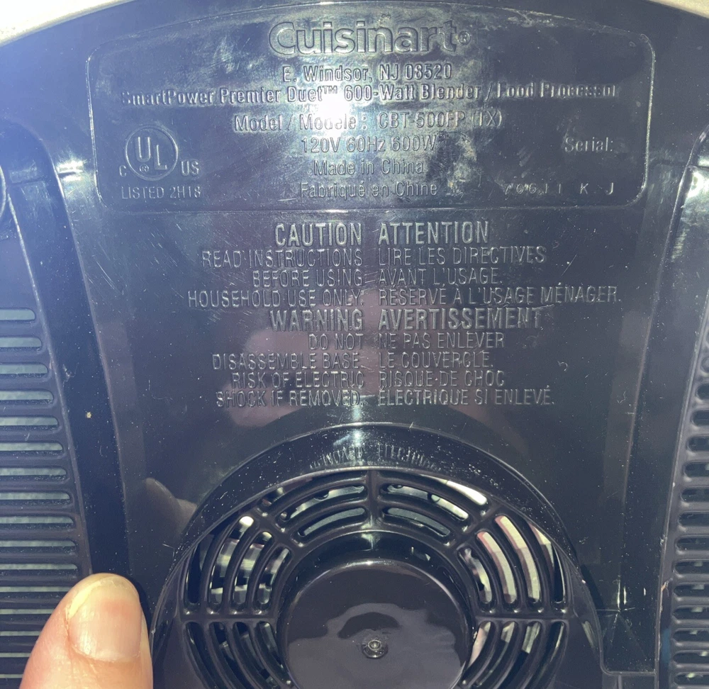 Blender and Food Processor. The Cuisinart CBT-500PP is a 600-Watt SmartPower Premier Electric Blender with a 50 oz capacity. It is made of metal and is designed for making frozen drinks and smoothies. The model includes 2 speeds and comes with a blender component.