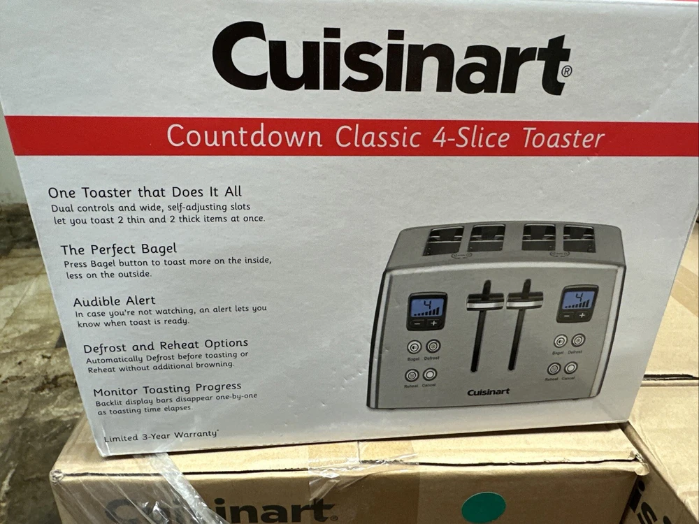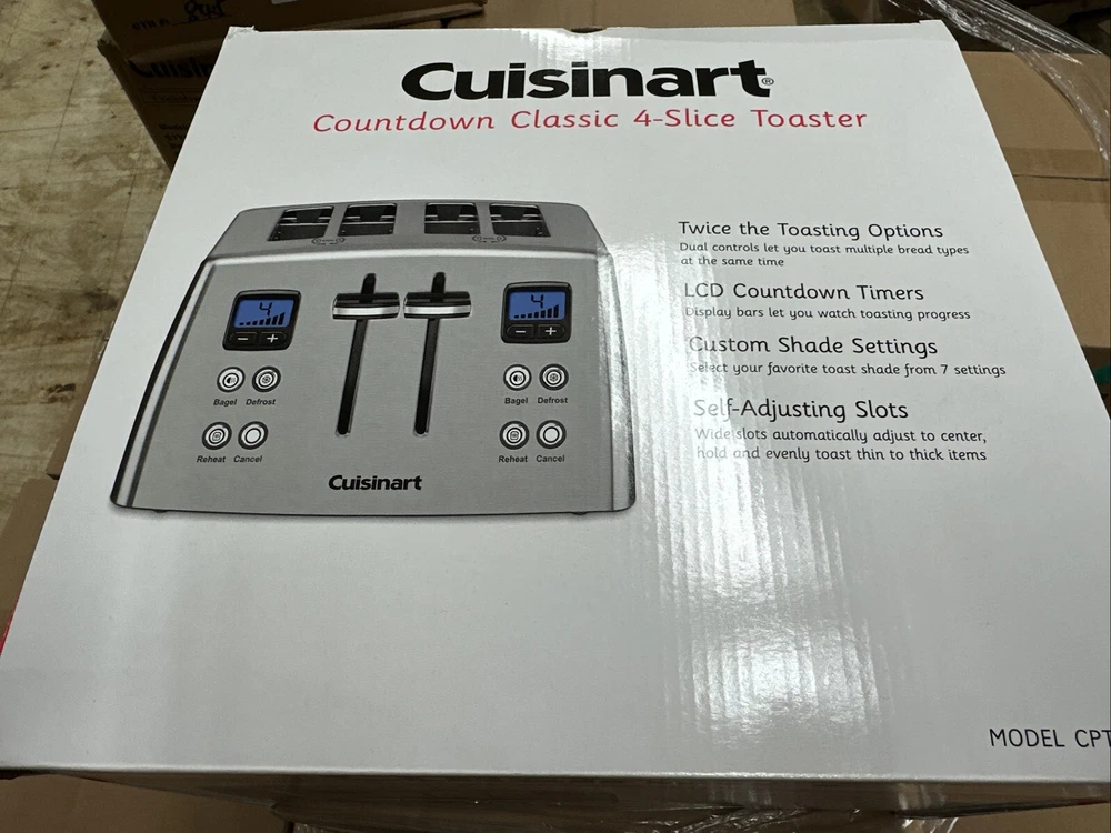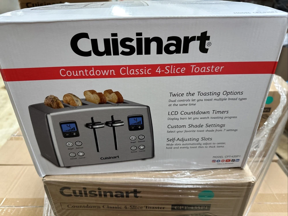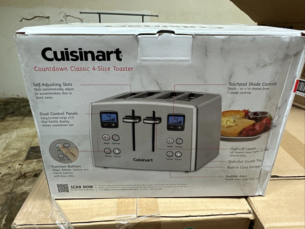Introducing the Cuisinart CPT-435P1 4-Slice Countdown Motorized Toaster Oven in Stainless Steel. This high-quality toaster oven is designed to make your breakfast routine easier and more efficient. With its sleek and modern design, it is perfect for any kitchen decor. This toaster oven features a countdown timer, which allows you to set the cooking time up to 135 minutes. It also has a motorized opening and closing mechanism, making it easy to load and unload your bread. The Cuisinart CPT-435P1 is made of durable metal with a brushed finish, ensuring that it will last for years to come. Get perfect and delicious toasted bread every morning with this amazing toaster oven. Brand new