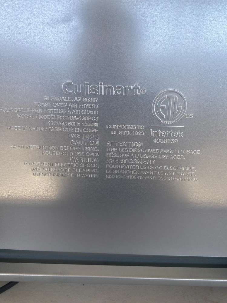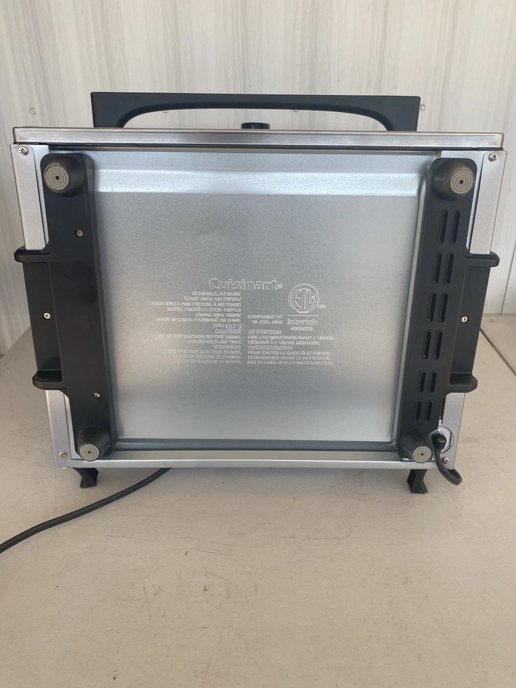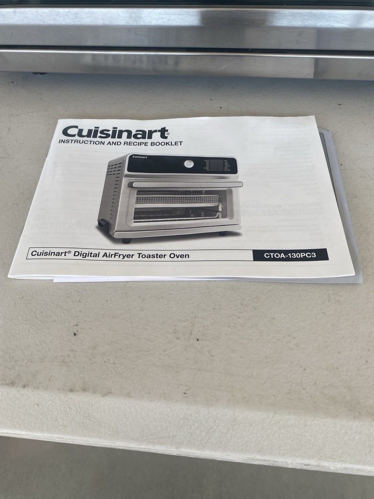Use but in excellent working condition The Cuisinart CTOA-130PC3 Airfryer Toaster Oven is a versatile kitchen appliance that combines the functions of an airfryer and a toaster oven in one compact unit. With a size of 0.6 cu ft (17 liters) and made of stainless steel, this gently used appliance is perfect for any home kitchen. The Cuisinart brand is known for its quality and durability, making this airfryer toaster oven a reliable choice for cooking your favorite foods with less oil and a crispy finish.