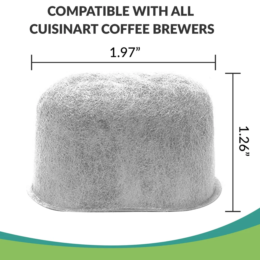 cuisinart filters are made of high quality for a reason. Coffee consist of over 98% water. Therefore, when the water is impure and tastes bad, your coffee also tastes bad. The best tasting cup of brew coffee are made with filtered water. Using activated charcoal purifier cartridges filter designed by will get rid of chemicals such as chlorine, calcium, sediments from rusted pipes and other odor impurities which can have adverse effect on health. Try our premium green water filters and you will notice the difference with your first cup with better tasting coffee either hot or cold! Universal Fit Cuisinart The filters are made for universal fit, including the following models: Cuisinart brewers: DCC-RWF, DCC-1000, DCC-1100, DCC-1150, DCC-1200, DCC-2000, DCC-2200, DCC-2600, DCC-3000, DCC-3200, DGB-500BK, DGB-550, DGB-600, DGB-700, DGB-900BC, DGB-475, CBC-00PC2, CBC-00WPC, DGB-500, DCC-1000BK, DCC-1400, CBC-001, CBC-002, CBC-00BKPC, CBC-SA002, SS-10, SS-15 and DCC-900. Set of 12 replacement water filters for Cuisinart brand machines. Simply place a cartridge into the water filter assembly and insert into your water tank reservoir. Fits all Cuisinart brewing coffee makers Installation Instruction: 1. Put the filter cartridge in water and soak for 10-15 minutes. 2. Rinse the filter cartridge under running tap water for 60 seconds. 3. Place the filter cartridge into the holder. 4. Install the holder into your coffee machine. Remember to replace filter after 60 days or 60 tank refills for best results! UNIVERSAL FIT FOR CUISINART AND BRAUN - The Cuisinart compatible replacement water filters made by are engineered to fit all Cuisinart coffee makers including the latest models such as DCC-RWF, DCC-1200, DCC-3000, DCC-3200, DCC-3200P1, DGB-900BC, SS-10, SS-15 brewing machines and much more. Also compatible with Braun coffee makers. For full list, see below. FINE CHARCOAL FILTRATION – Premium organic activated charcoal granules are designed to increase the exposure to water and maximize the efficiency of filtration and purification. filters is made of high quality charcoal that purifies the water from harmful contaminants. MICRO-MESH MATERIAL - Precise design of cartridge micro-mesh material prevents activate charcoal of escaping and clogging Cuisinart coffee maker. IMPROVES COFFEE TASTE - Activated charcoal is specifically made to improve drink taste by removing impurities such as calcium, chlorine, sediment and other odors creating a healthy pure irresistible best-tasting coffee while retaining all the necessary minerals for the body. EASY TO REPLACE: Hassle-free install and convenient to replace and start to enjoy a fresh TASTY cup of coffee in your home kitchen or office. Comes in 6-Pack or 12-Pack depending on your choice.