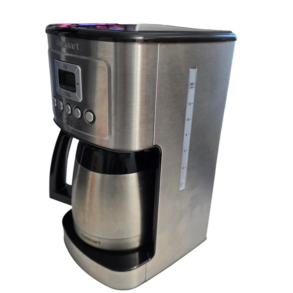 Cuisinart 14-Cup Programmable Coffee Maker, model DCC-3200C. The unit has been tested and works properly. Heats, brews, and all buttons respond as expected. Features a 14-cup capacity, programmable timer, brew strength control (Regular/Bold), self-clean function, and carafe temperature control. Stainless steel finish with a modern design. Condition: Good pre-owned condition. Shows normal signs of use such as light scratches and coffee residue (see photos for exact condition). Features & Specs: Brand: Cuisinart Model: DCC-3200C Capacity: 14 cups Programmable auto-brew Brew strength control (Regular / Bold) Self-clean function Carafe temperature control Voltage: 120V / 60Hz Included: Coffee maker base Thermal carafe with lid Built-in filter basket (No paper filters included) Item will be safely packaged and shipped promptly. Please feel free to message me with any questions.