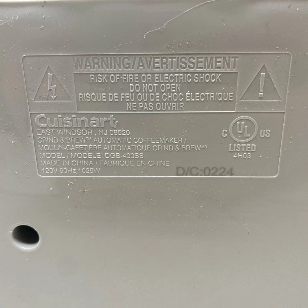 Condition: Used - Good The item has dirt, stains and/or discoloration Missing coffee glass pot See photos for full visual reference Model: Cuisinart DGB-400SS 12-Cup Grind & Brew Coffee Maker Stainless (No Carafe) At Unturned, we were shocked to discover how many perfectly functional returns were being wasted. That's why we made it our mission to offer these e-commerce returns—often overlooked and discarded—at unbeatable prices. We carefully inspect and test all our products to ensure quality and accurately describe their condition. However, if you receive an item that does not match the description or meet expectations, please reach out, and we will make it right!