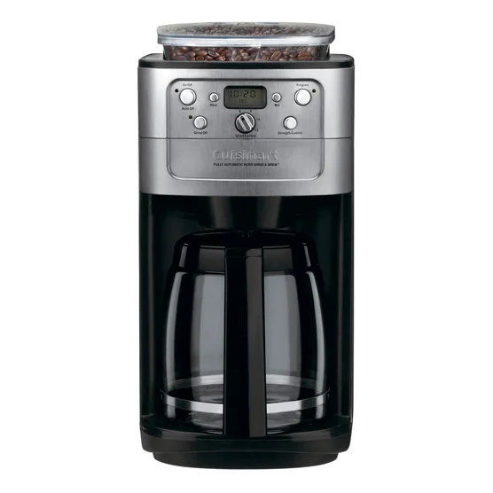The Cuisinart DGB-700BC Grind & Brew 12 Cups Automatic Coffee Maker in Brushed Chrome is a sleek and stylish coffee maker that combines the convenience of a built-in grinder with the functionality of a programmable coffee maker. With a Burr grinding method, digital control panel, and features such as auto-shutoff and a built-in water filter, this coffee maker offers a hassle-free way to enjoy a delicious cup of coffee every morning. The metallic finish and glass carafe add a touch of elegance to any kitchen, making it a must-have appliance for coffee lovers. The built-in grinder provides precise grind control, and the pause-and-serve feature offers flexible brewing options. The energy-saving mode and 3-year manufacturer warranty ensure efficiency and peace of mind.