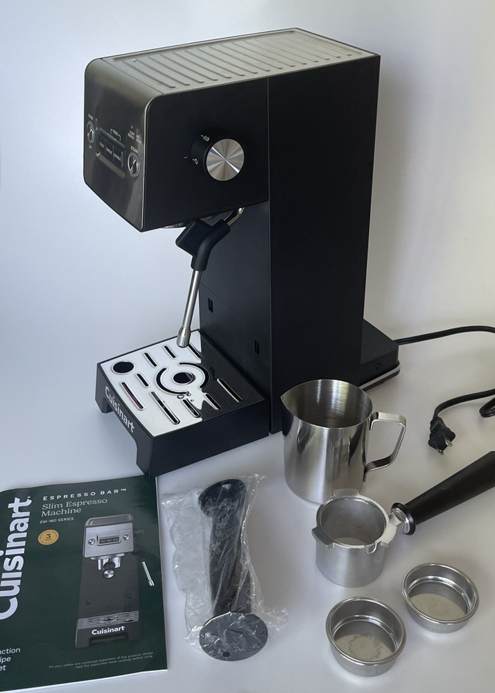 Cuisinart Espresso Bar Collection Slim Espresso Machine - Open Box ShopDeals USA FREE SHIPPING with UPS, USPS, or FedEx #1 FOR A REASON! Cuisinart Espresso Bar Collection Slim Espresso Machine - Reliable and Powerful Espresso Machine for Your Home The Cuisinart Slim Espresso Machine from the Espresso Bar Collection delivers rich and bold espresso in a compact footprint. Please note: the water tank is missing . Package Contents Cuisinart Slim Espresso Machine Portafilter Instruction Manual Missing: Water tank. Please see photos for all accessories. Condition Gently Used: This has been quality-inspected, cleaned, and verified to be in excellent working condition. May have minor cosmetic blemishes. See each photo for a better visual description. Shipping Details Location: Ships from USA Carriers: UPS, USPS, or FedEx Cost: FREE SHIPPING Trusted Seller: 100% Positive Feedback | USA-Based Add to Watchlist for Updates!