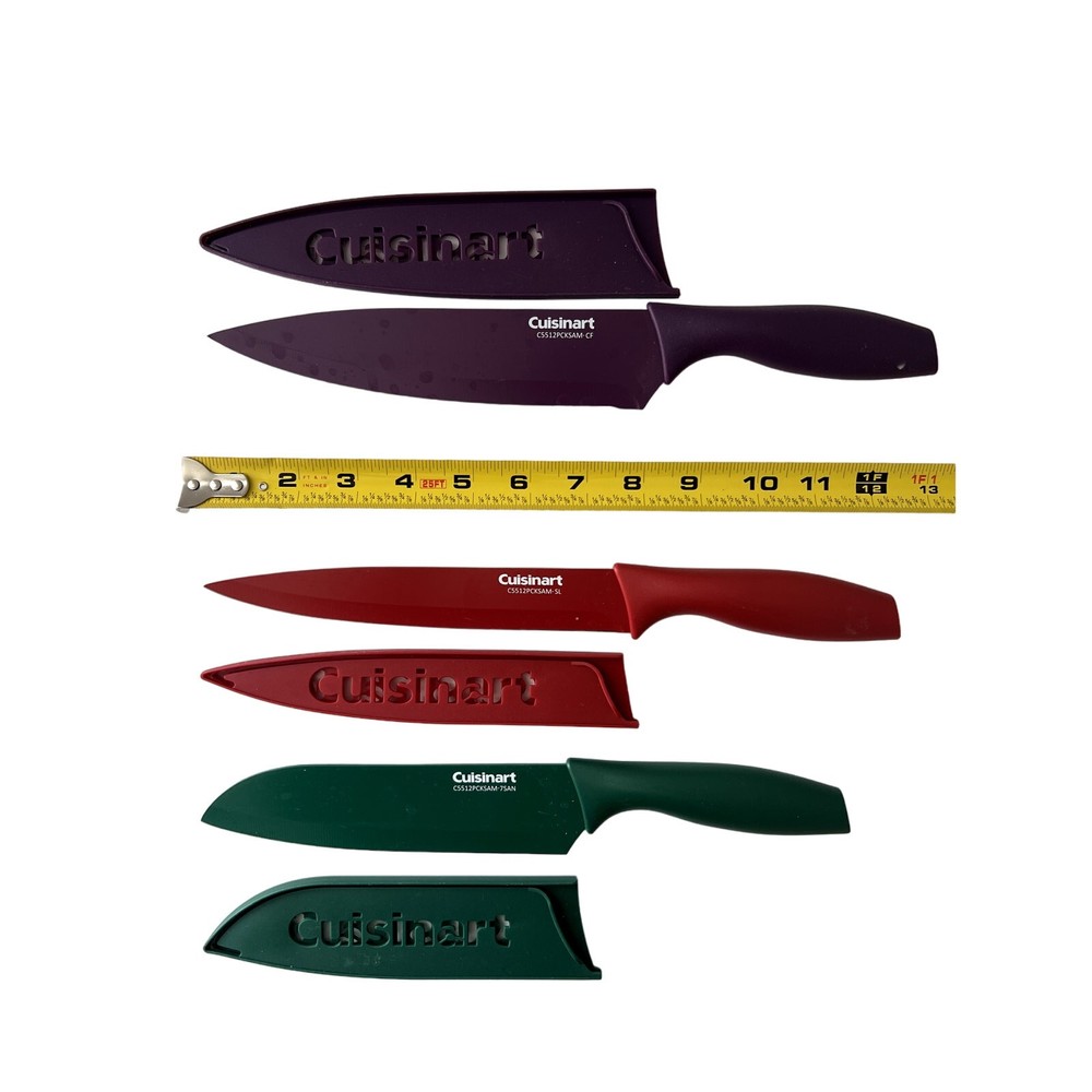 Cuisinart Knife Set Of 3 Colorful Knives With Hard Sheath Covers Excellent