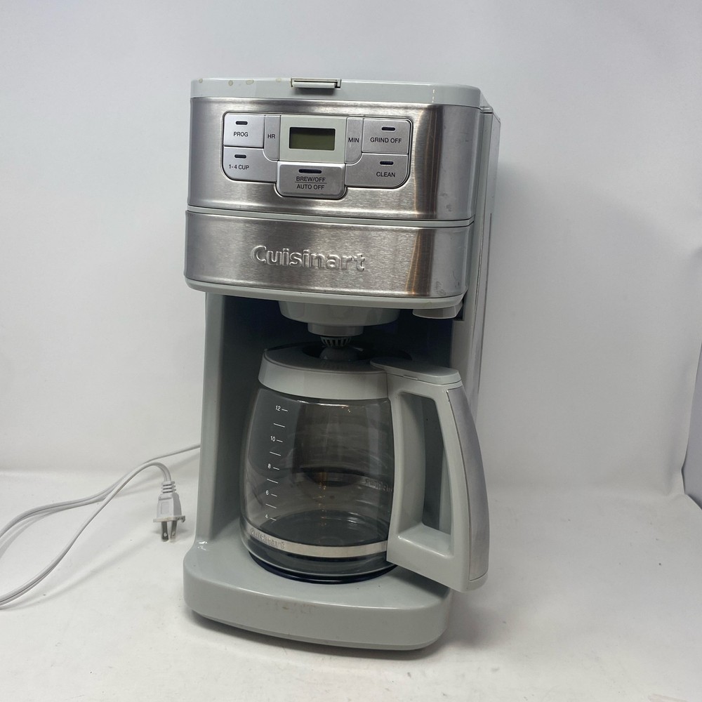 Condition: Used - Good The item has dents The item has dirt, stains and/or discoloration See photos for full visual reference Model: Cuisinart Stainless Steel Grind & Brew 12-Cup Coffeemaker w/ Glass Carafe At Unturned, we were shocked to discover how many perfectly functional returns were being wasted. That's why we made it our mission to offer these e-commerce returns—often overlooked and discarded—at unbeatable prices. We carefully inspect and test all our products to ensure quality and accurately describe their condition. However, if you receive an item that does not match the description or meet expectations, please reach out, and we will make it right!