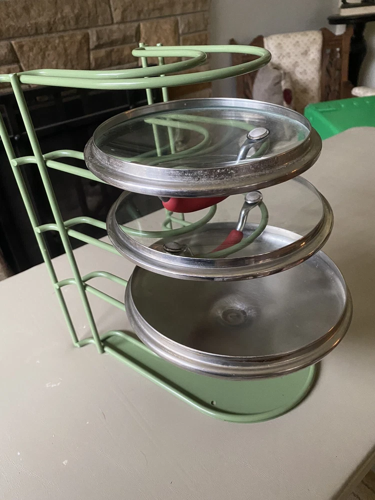 Metal Kitchen Cabinet Cookware Organizer Rack for Pans, Pots, Lids. Could be used for file folders too! New without box.