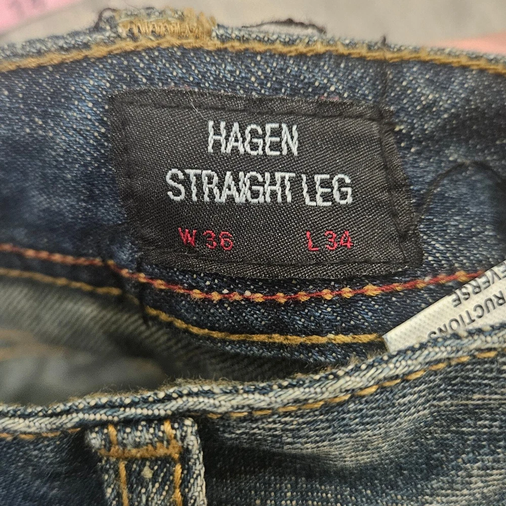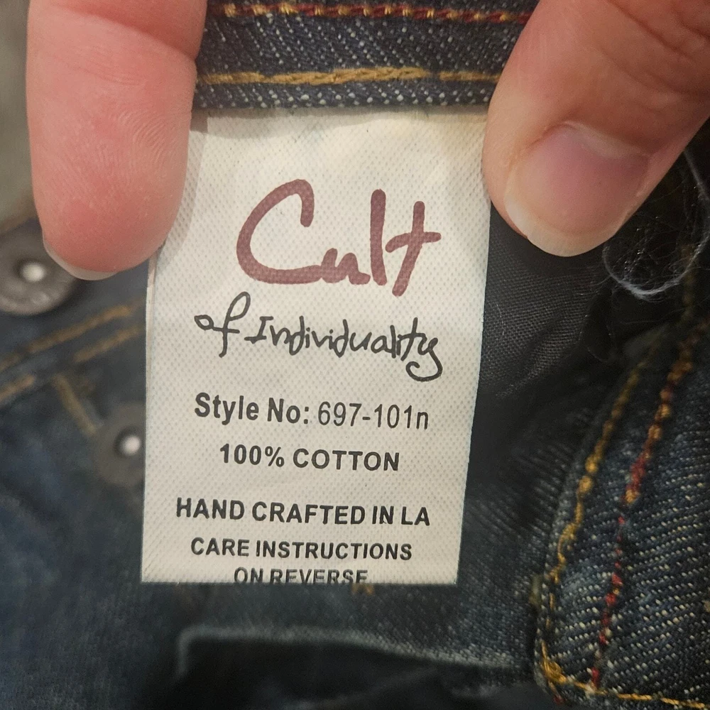 Cult Of Individuality Jeans Size 36x34 Hagen Straight Leg Dark Wash Distressed Measurements are included in the photos Elevate your casual style with these Cult of Individuality Hagen Relaxed fit jeans in a dark wash. Made from 100% cotton denim fabric, these straight leg jeans feature a 5-pocket design and a button-fly closure with belt loops. The jeans have whiskering, fading, and distressed accents for a look that adds character to your outfit. They are easy to care for, machine washable, and suitable for all seasons. The jeans are designed in Los Angeles, California, and have a USA streetwear theme. Excellent Pre Owned Condition Bundle for a discount or send an offer