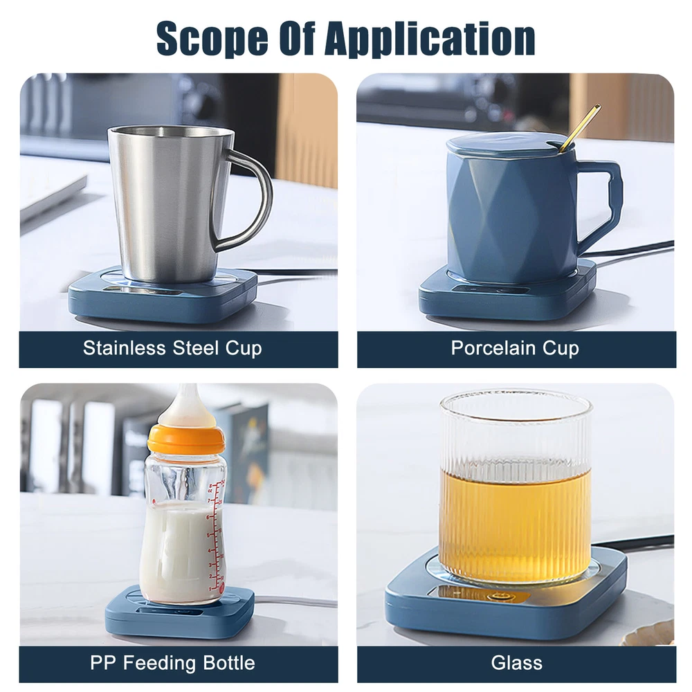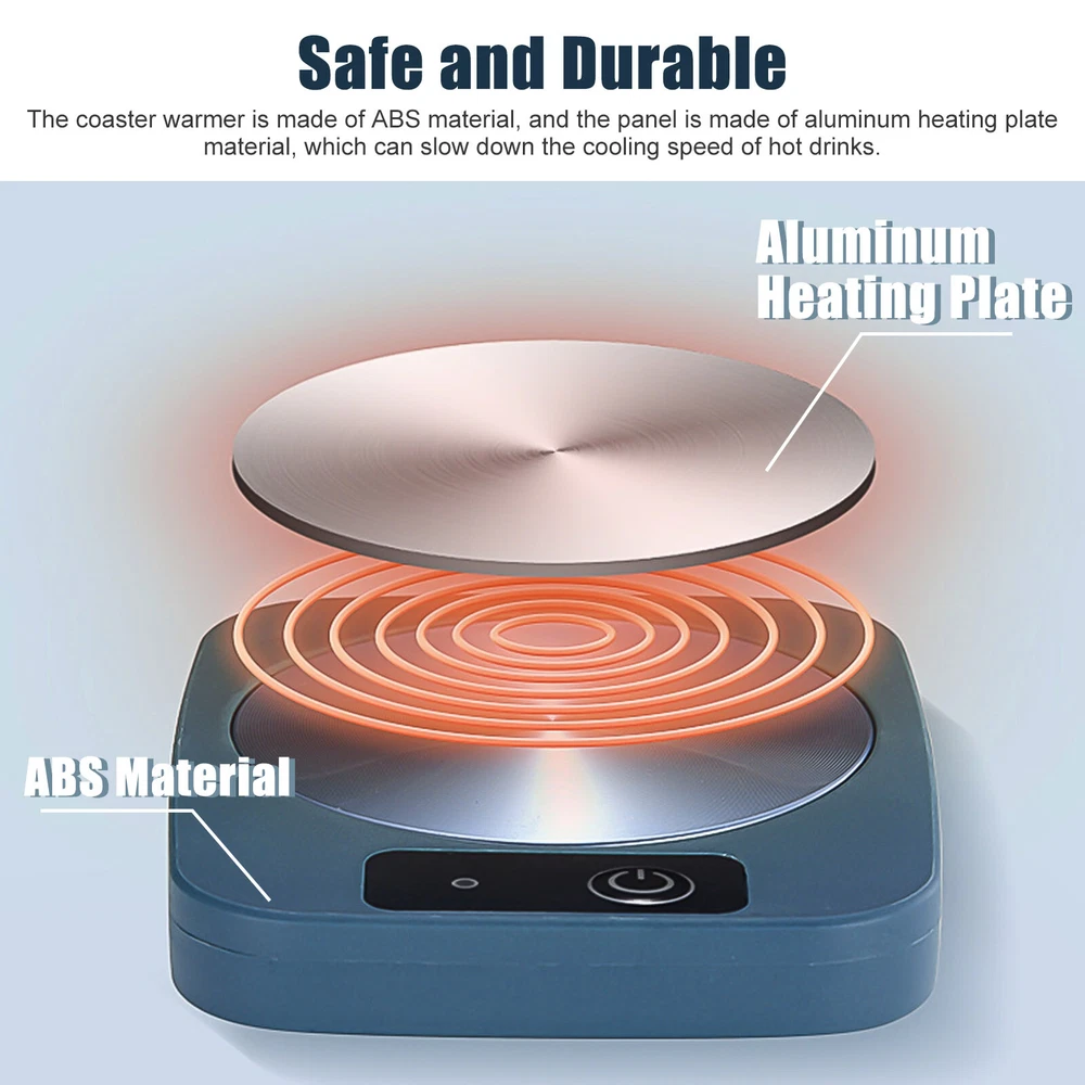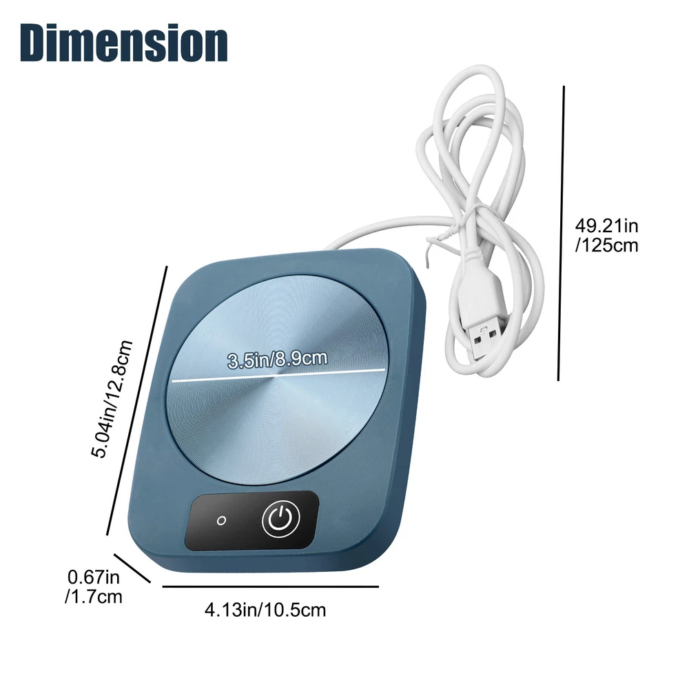 Product Feature ☕ USB Power Supply : Place a cup with water on the aluminum plate, short press the switch button, the indicator light will light blue, start heating , keep the temperature at 55°, and short press again to turn off . ☕ Constant Temperature : Plug in and use, it can maintain a constant temperature throughout the day. ☕ Scope of Application : Compatible with most tumblers, metal, glassware, milk cartons, plastic cups and more. ☕ Portable : Safe and energy-saving, light and portable, easy to carry, and will not take up too much space. ☕ Safe and Durable : The coaster warmer is made of ABS material, and the panel is made of aluminum heating plate material, which can slow down the cooling speed of hot drinks. Note 🔔 The USB plug should be an adapter within 5A, or the lamp core will be burnt out if the voltage is unstable and the output current is too high. Product Specification Type Intelligent Thermostat Warm Coaster Quantity 1 Color Blue Size 13x10x2cm (5.12x3.94x0.79in) Shell Material ABS Panel Aluminum Heating Plate Power Supply USB Temperature Constant Temperature At 55°C Power 16W Package Included 🎁 1 x Thermostat Warmer Coaster