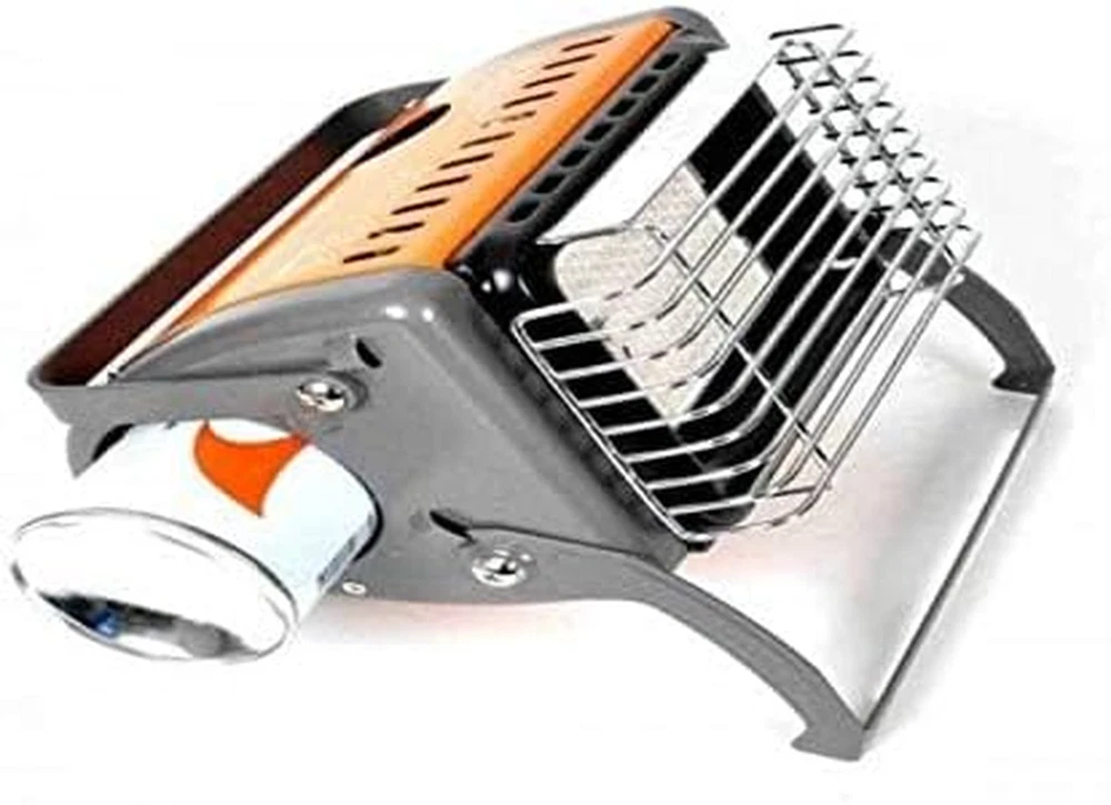 Fuel: Butane (Nozzle type gas canister) Includes hard carry case Folding legs to provide stable base Ceramic based heating plate Fuel canister not included Kovea Cupid Space heater. Uses butane as a fuel, includes a carry case. Has an Auto shut off mechanism,