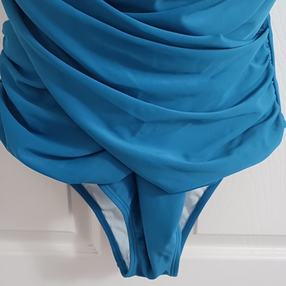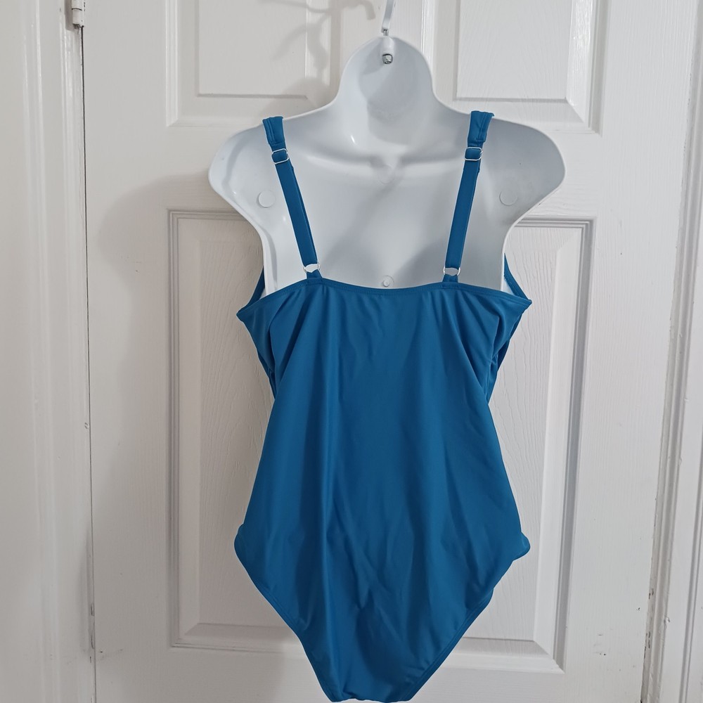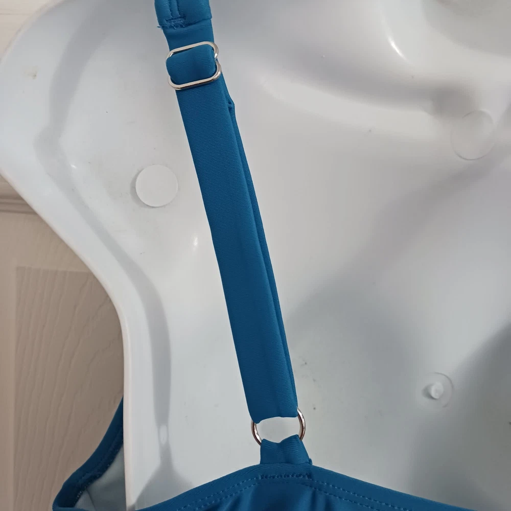 HomeCupshe Women's V Neck One Piece Swimsuit Blue Solid Size Large NEW