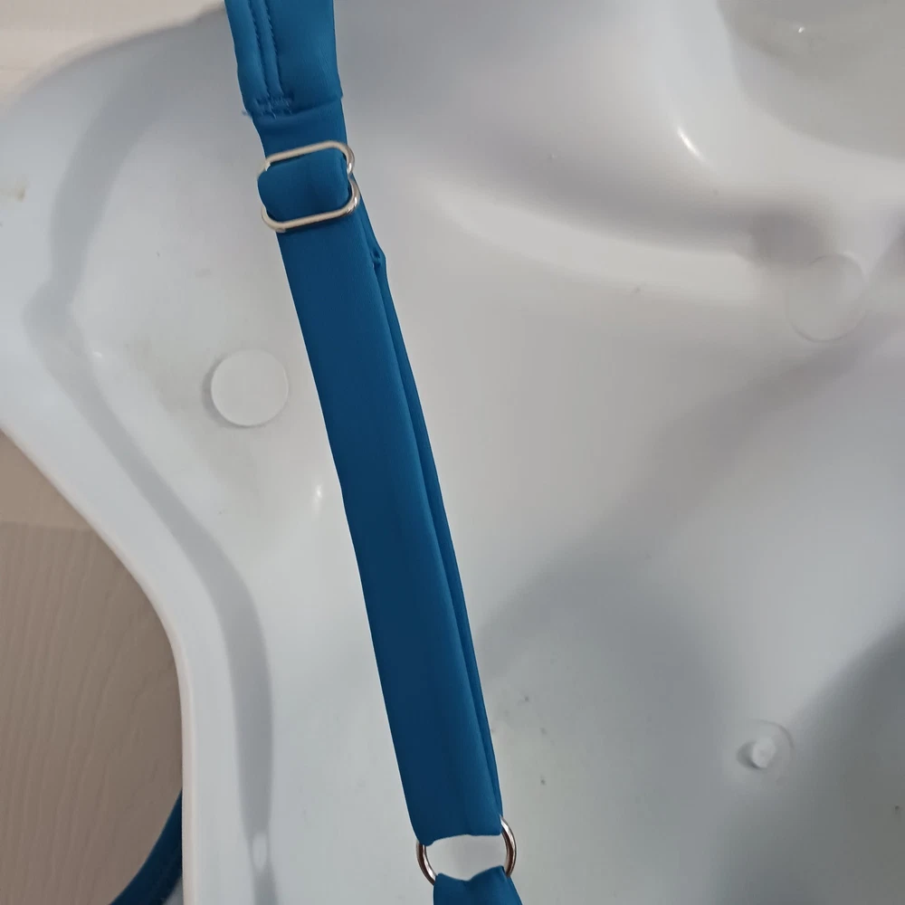 Smoke-free petfree padded v neck adjustable straps Teal blue sanitary sticker still applied